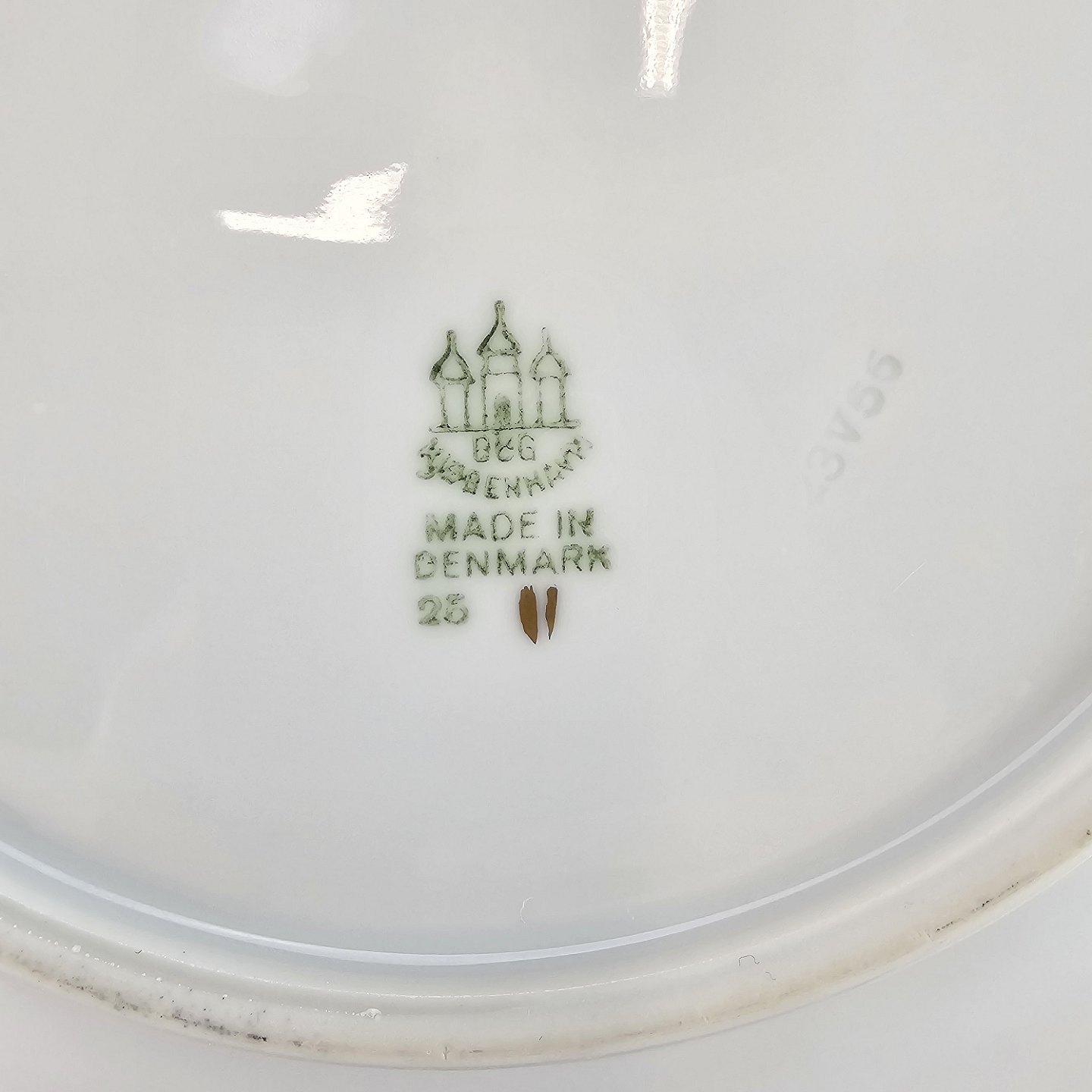 Hasselnød er hvidt porcelæn dekoreret med guldfarvet nødder, grønne blade samt et lys grønt bånd og guldkant. Brugsspor kan forekomme