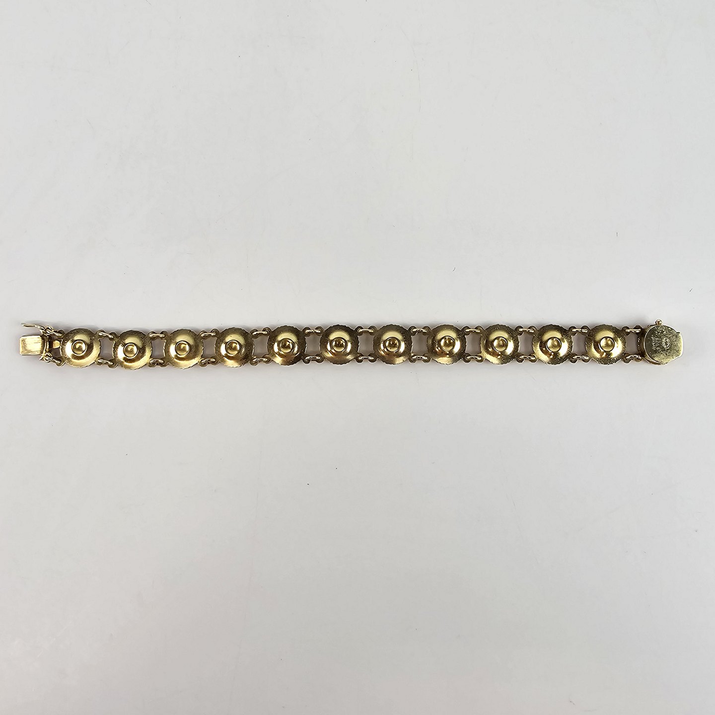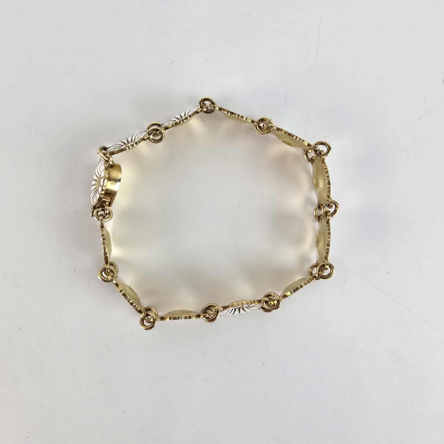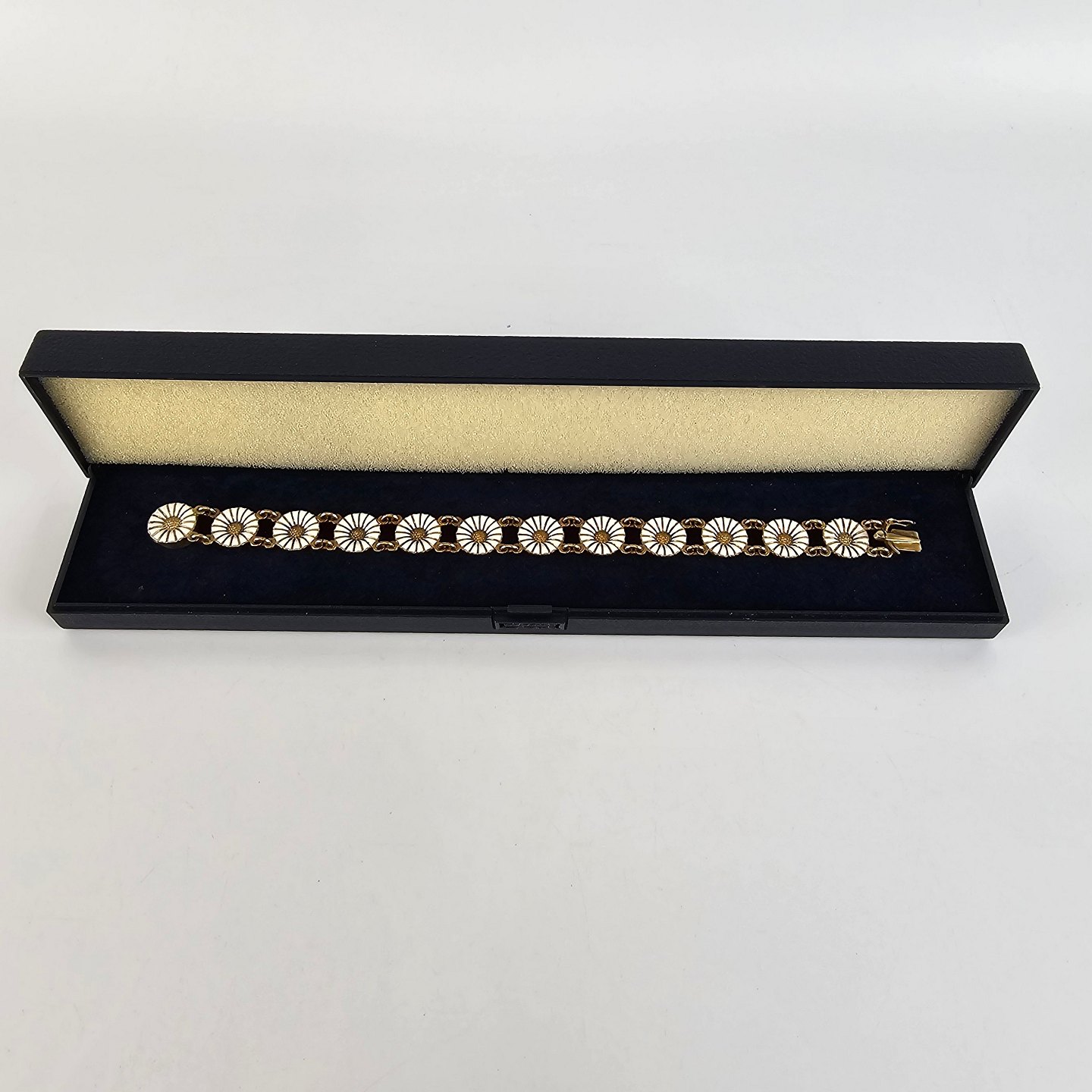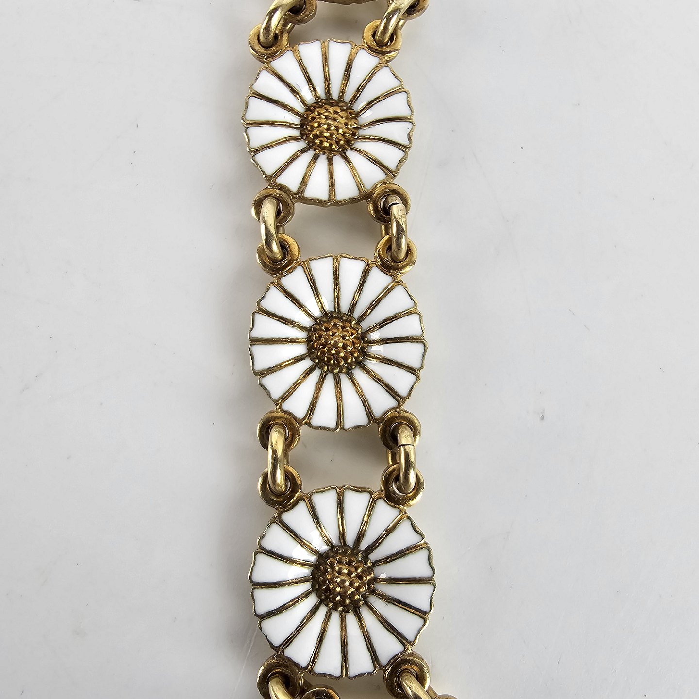 Armbånd af 12 margueritter med emalje i forgyldt sølv. Stemplet 925s