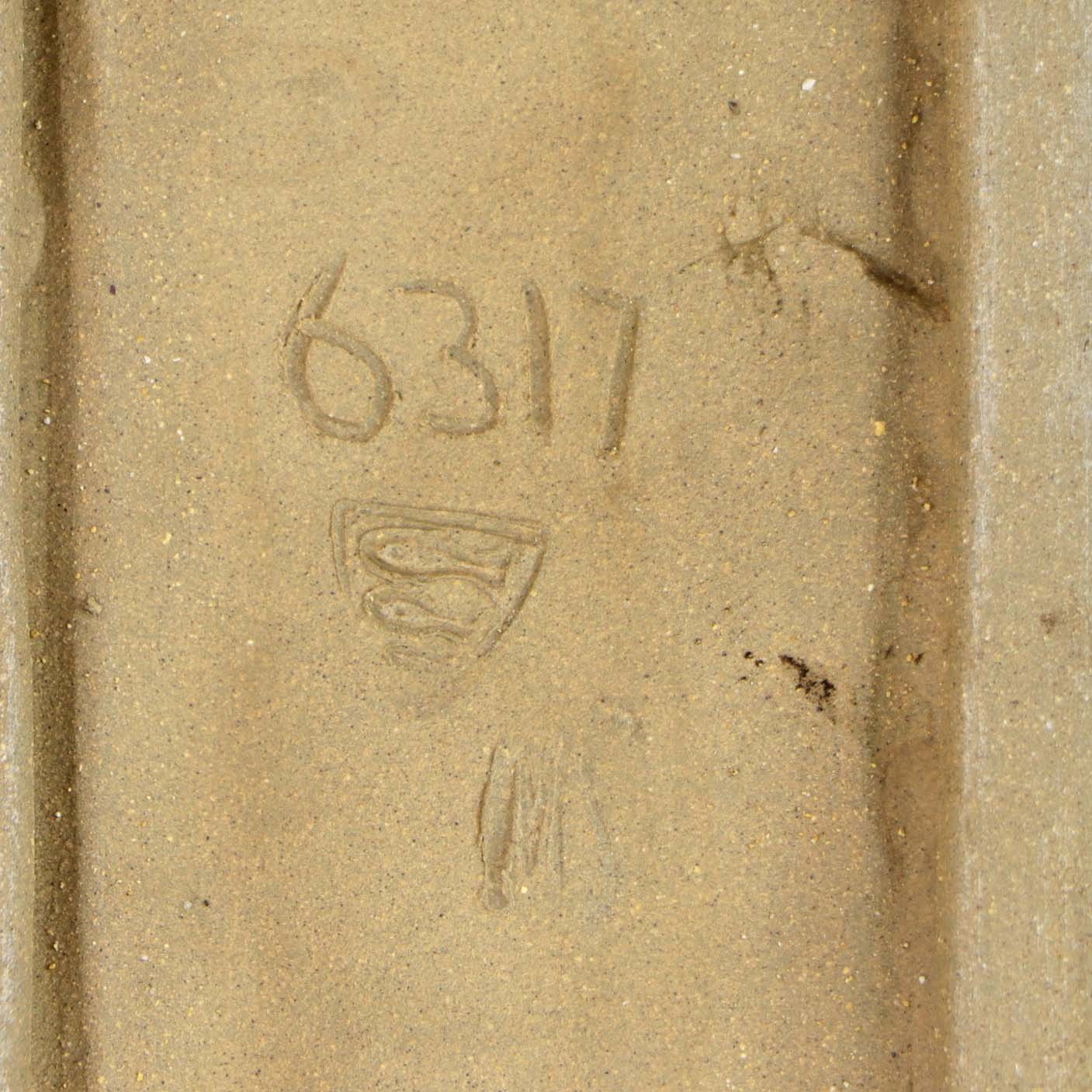 Relief i keramik med motiv af sommerfugle dekoreret med blå og hvid glasur på baggrund af rå keramik. Nr. 6317