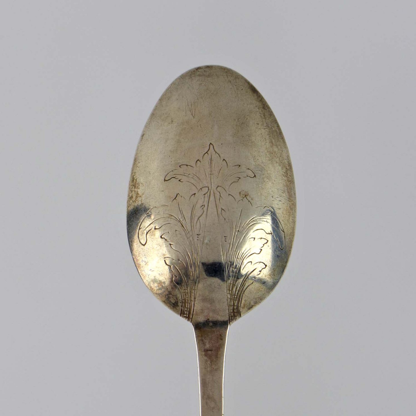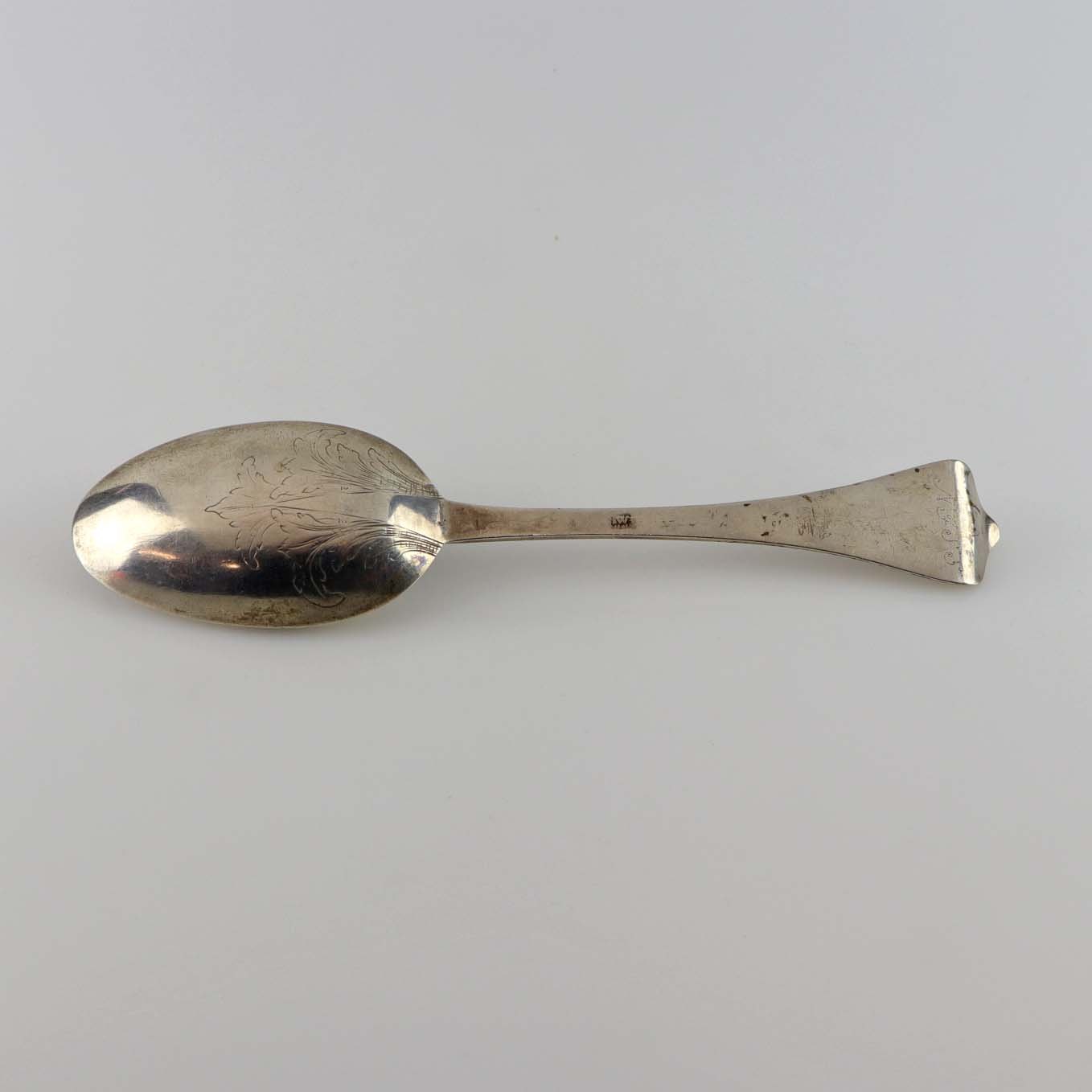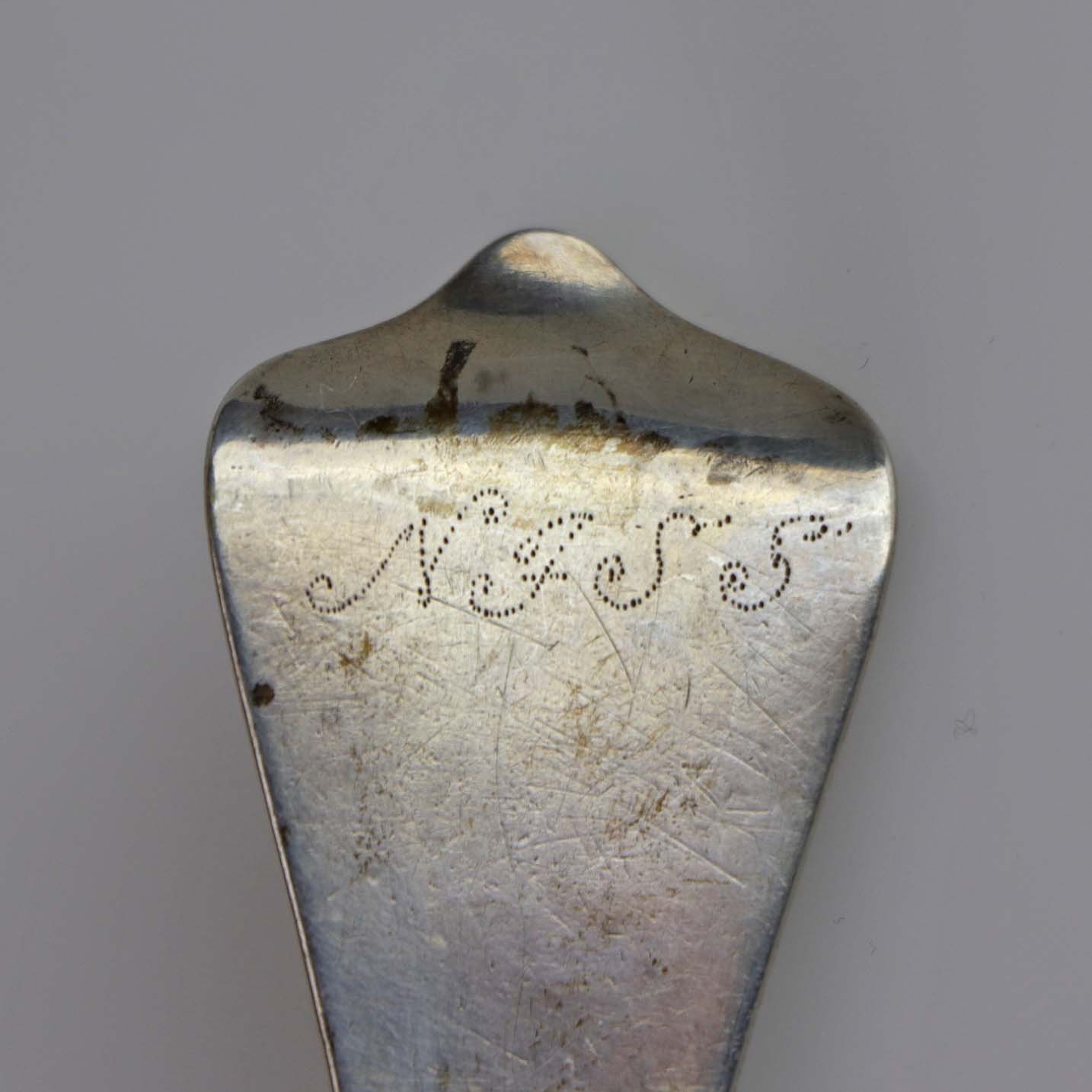 Antik spiseske i sølv fra 1700 tallet med monogrammet N.J.S.S.