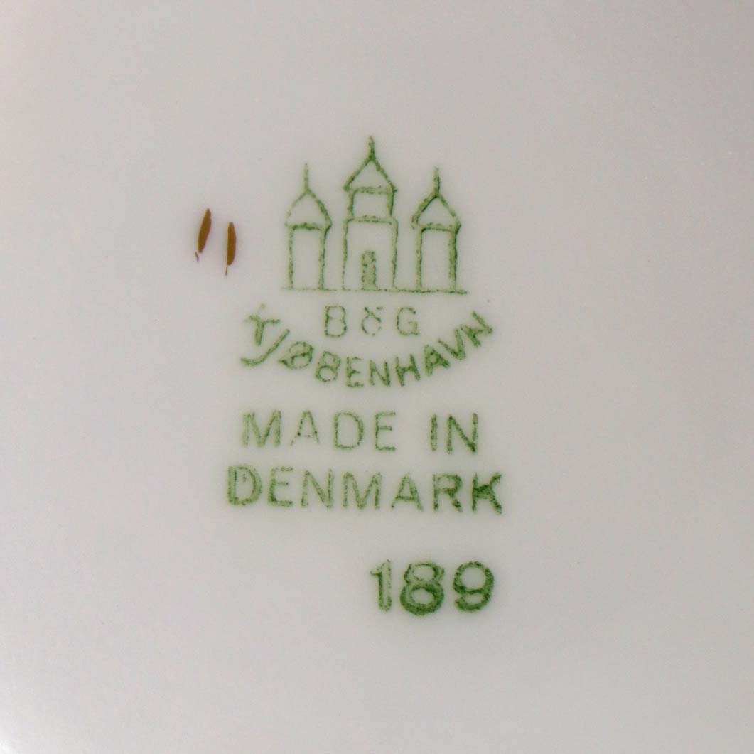Strauss er af hvidt glaseret porcelæn med et bredt bånd i mintblå, samt enkelte guldlinjer. Lettere brugsspor kan forekomme