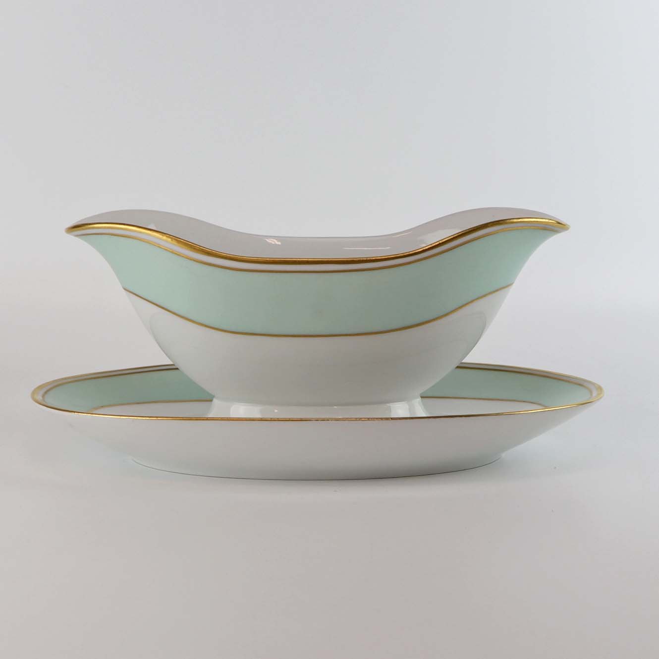 Strauss er af hvidt glaseret porcelæn med et bredt bånd i mintblå, samt enkelte guldlinjer. Lettere brugsspor kan forekomme