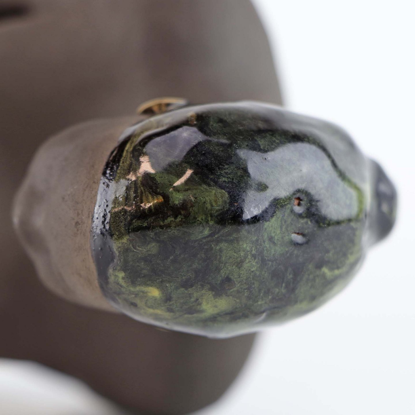 Fremstår med to ujævnheder i glasuren ved figurens top
