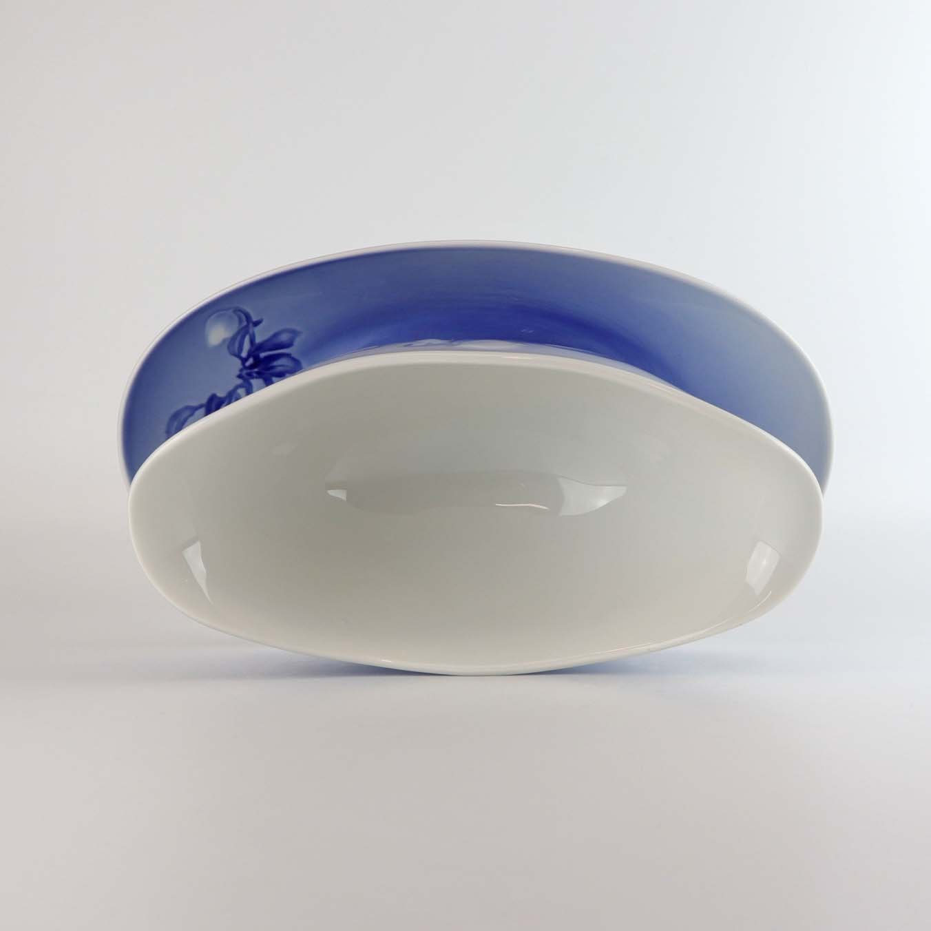 Julerose er hvidt porcelæn med gradueret blå farver, dekoreret med et motiv af en hvid julerose