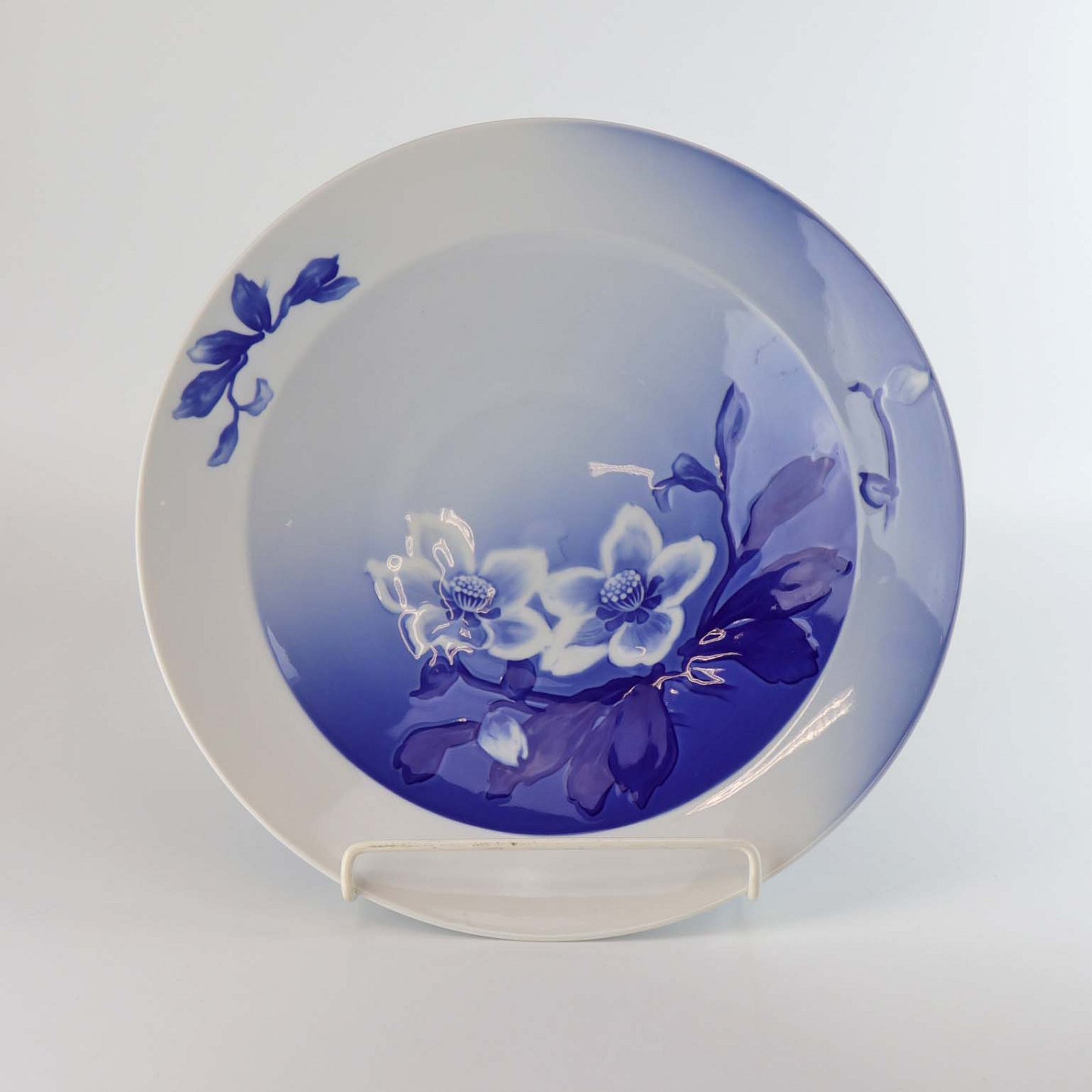 Julerose er hvidt porcelæn med gradueret blå farver, dekoreret med et motiv af en hvid julerose
