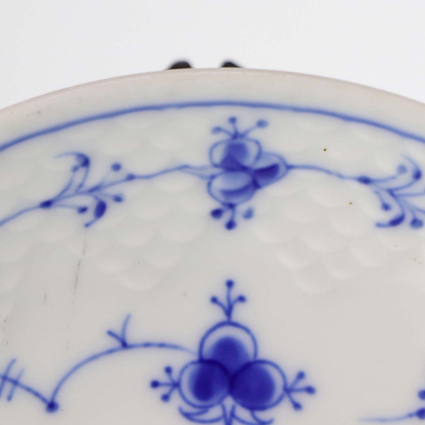 Blåmalet er i kraftigt hvidt porcelæn med skælform dekoreret med blå ranker og blomster. Hotelporcelæn er kendetegnet ved sit tykkere og mere holdbare udseende. Produktionen af jernporcelæn startede i ca. 1900 og senere igen 1930'erne. Stellet er restaurationsservice og er produceret til bland andet skoler, restauranter og hoteller.