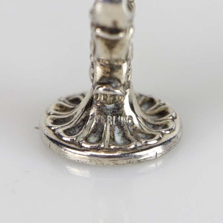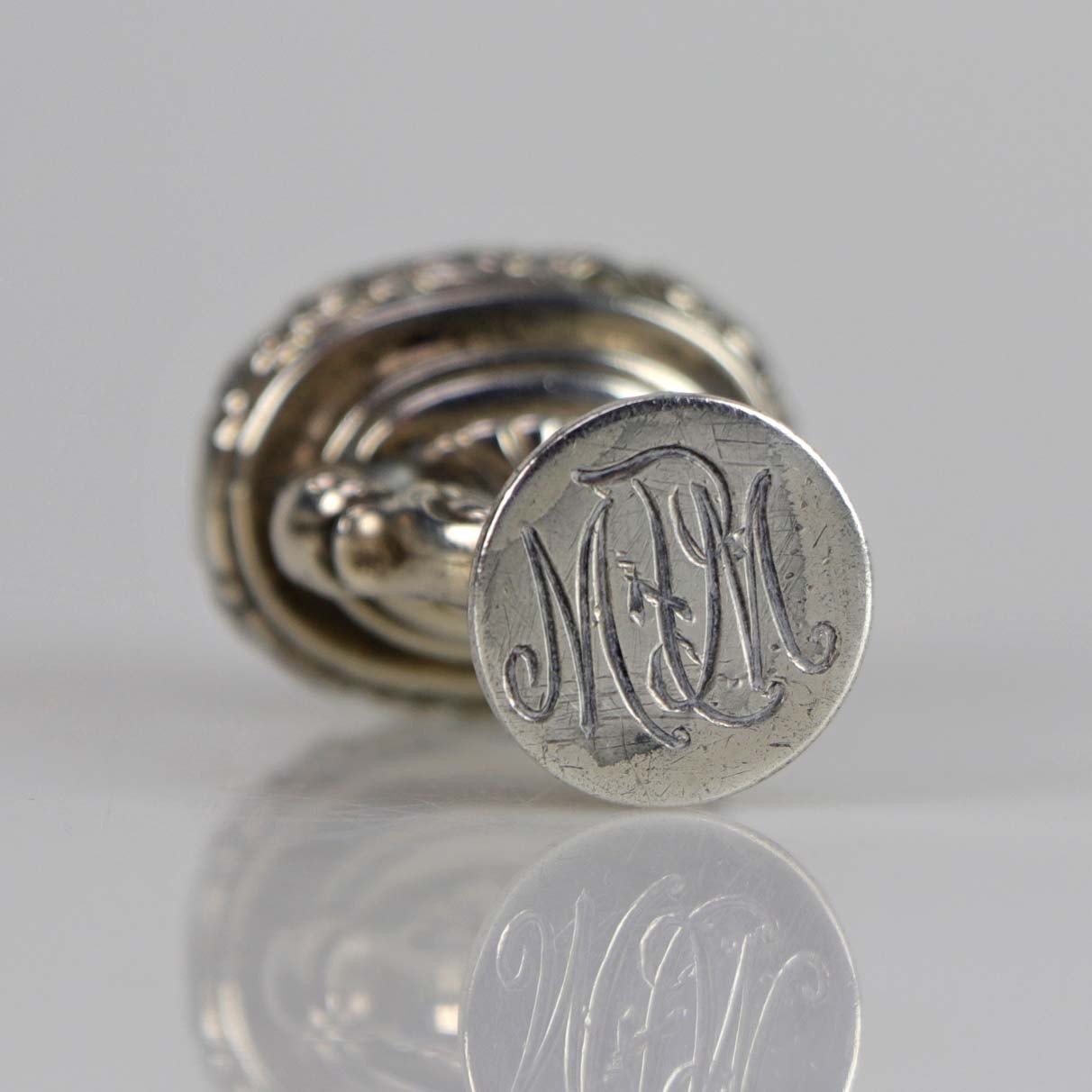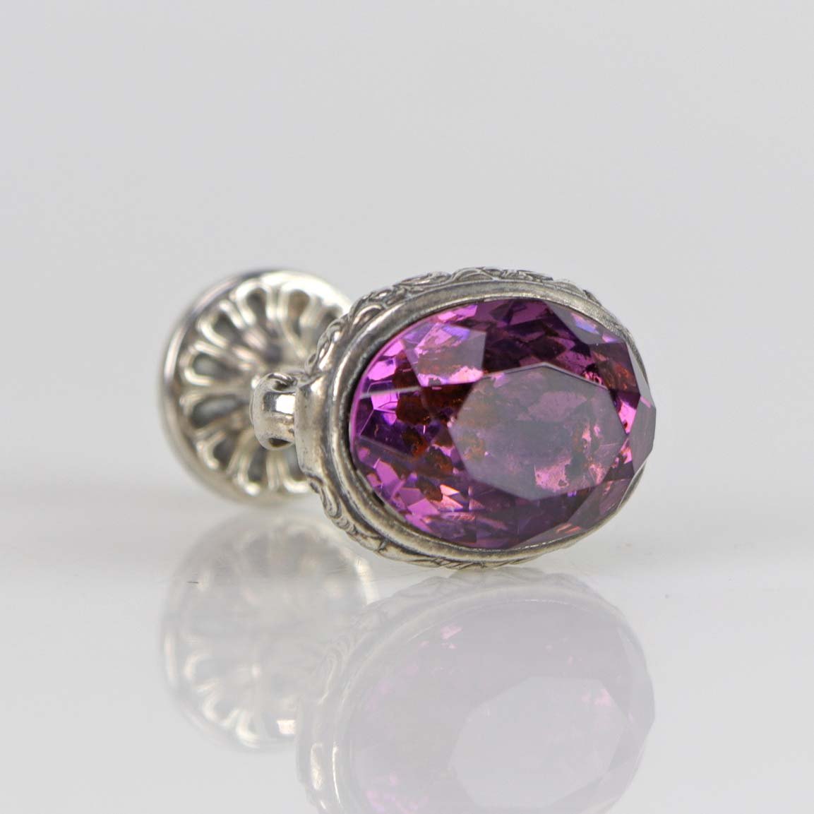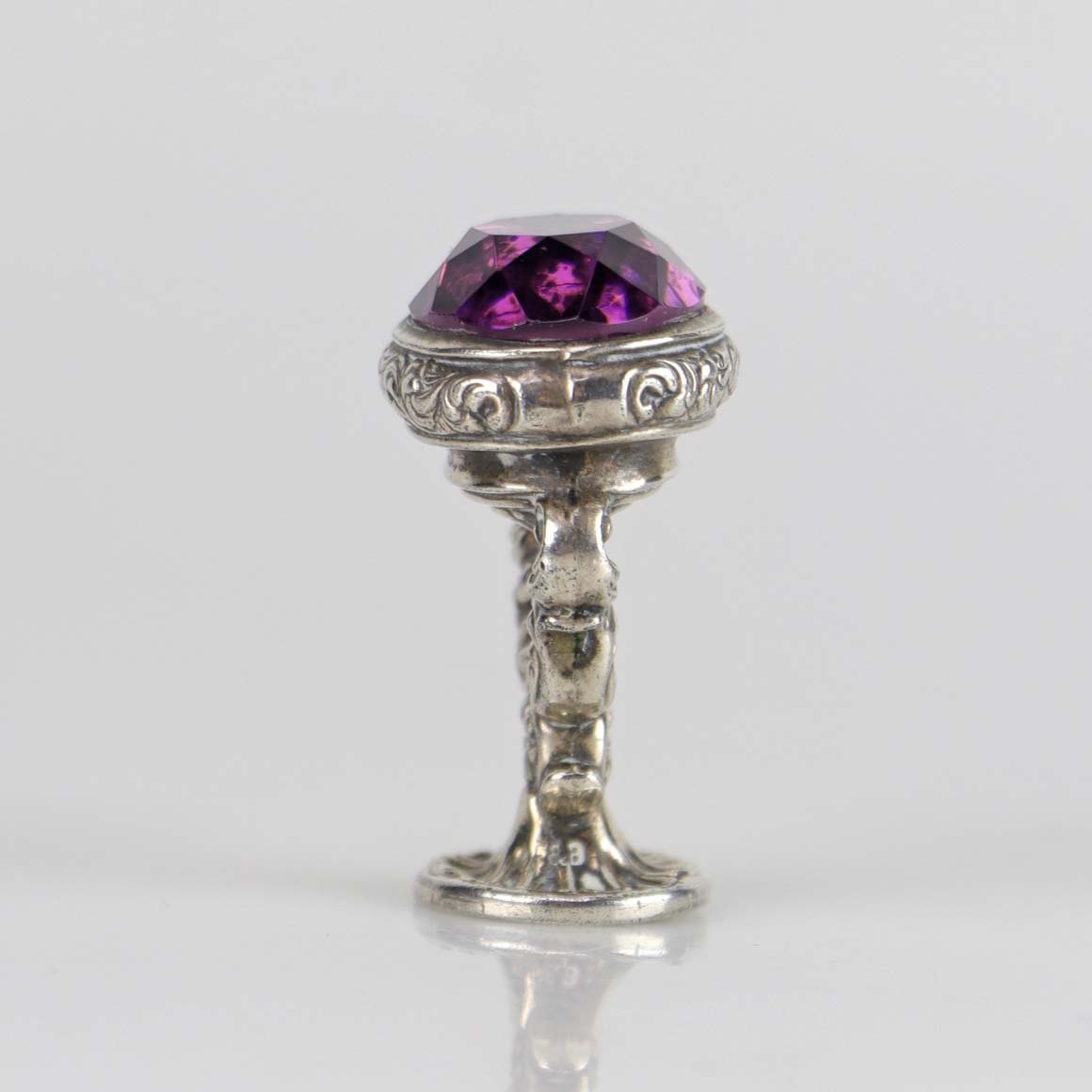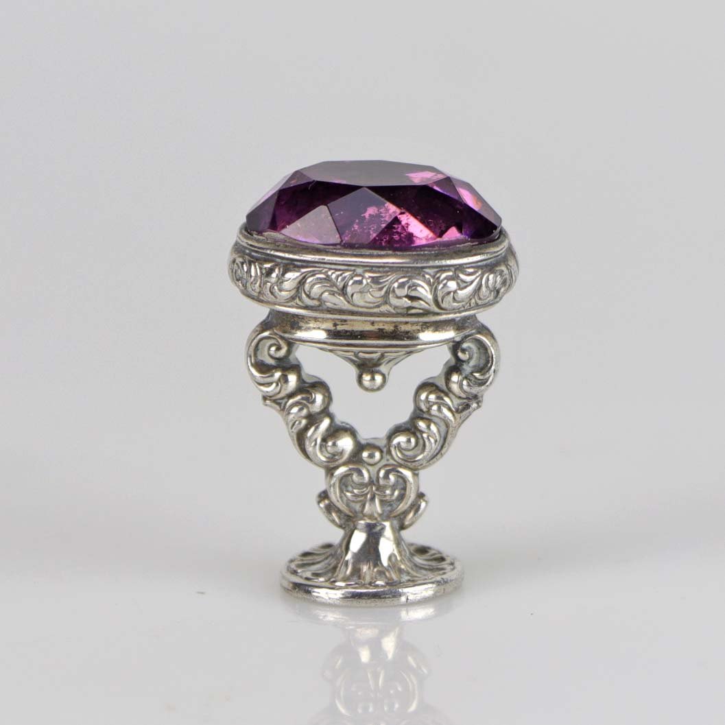 Signatur stempel i sterling sølv med monogrammet M M. Stemplet er dekoreret med en lilla sten
