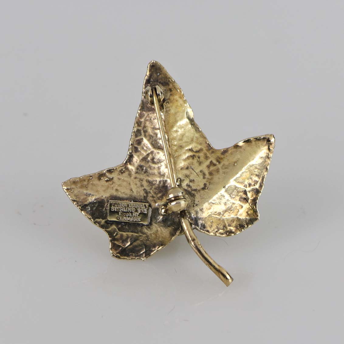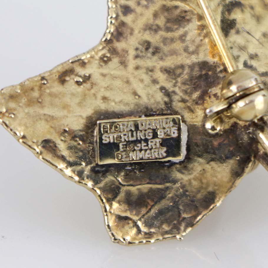Flora Danica broche Blad med bær Forgyldt sølv