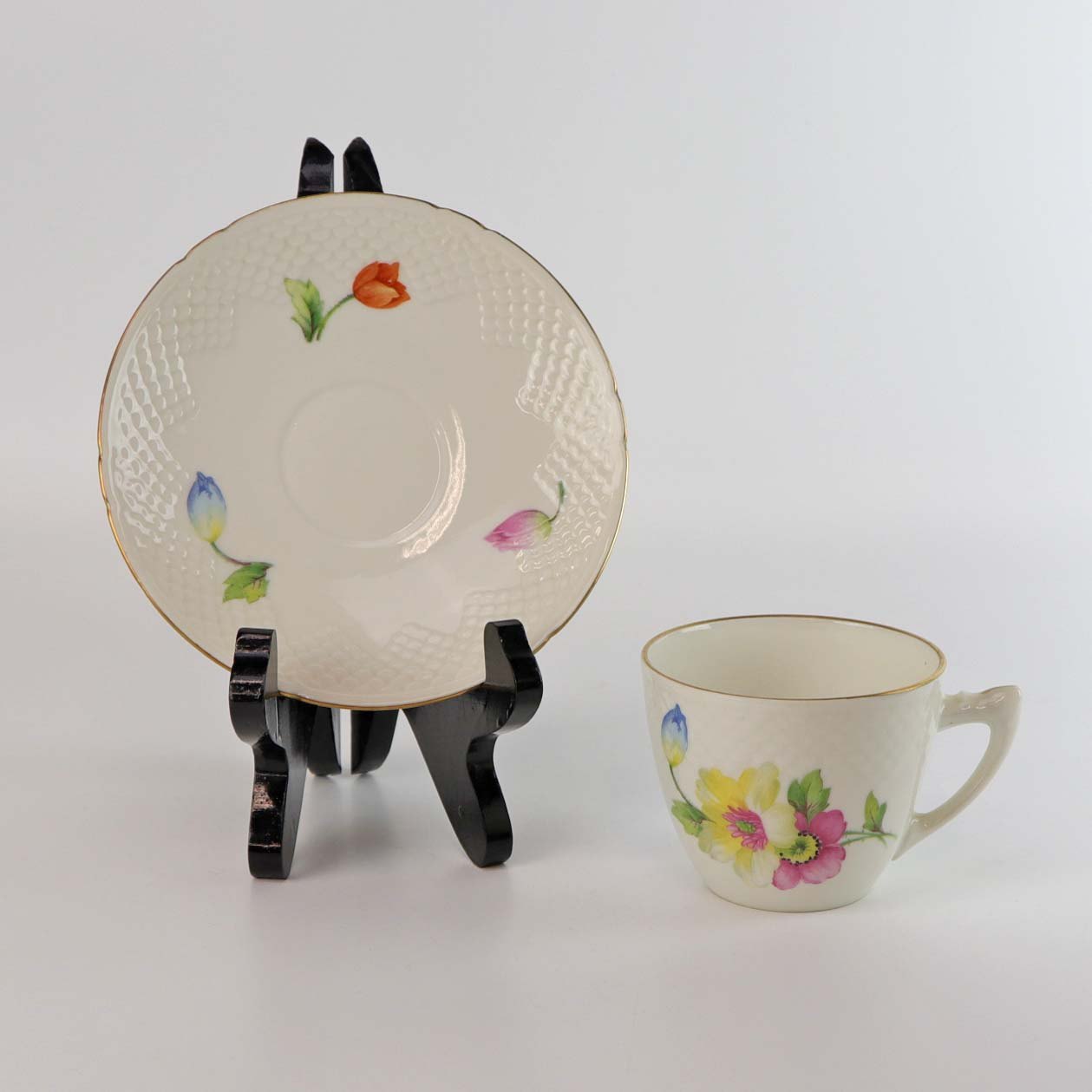 Thor Anemone er af cremefarvet glaseret porcelæn, dekoreret med forskellig farvede anemoner og gylden kant