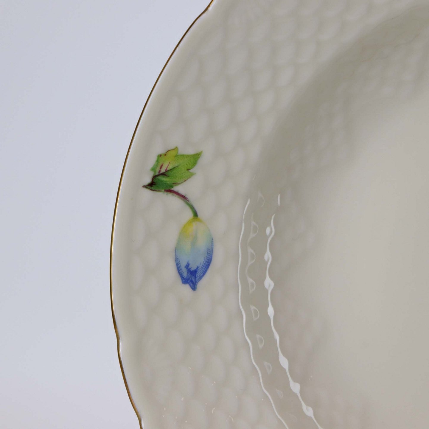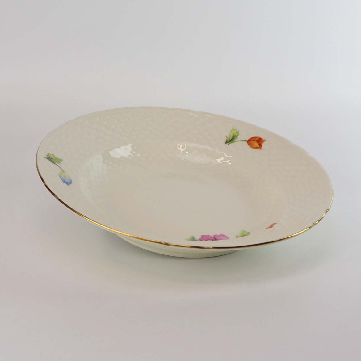 Thor Anemone er af cremefarvet glaseret porcelæn, dekoreret med forskellig farvede anemoner og gylden kant
