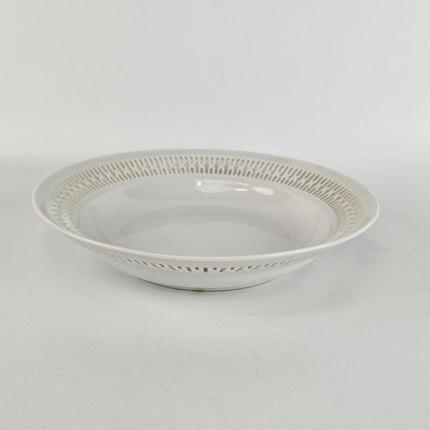 Service i hvidt porcelæn med gennembrudt kant