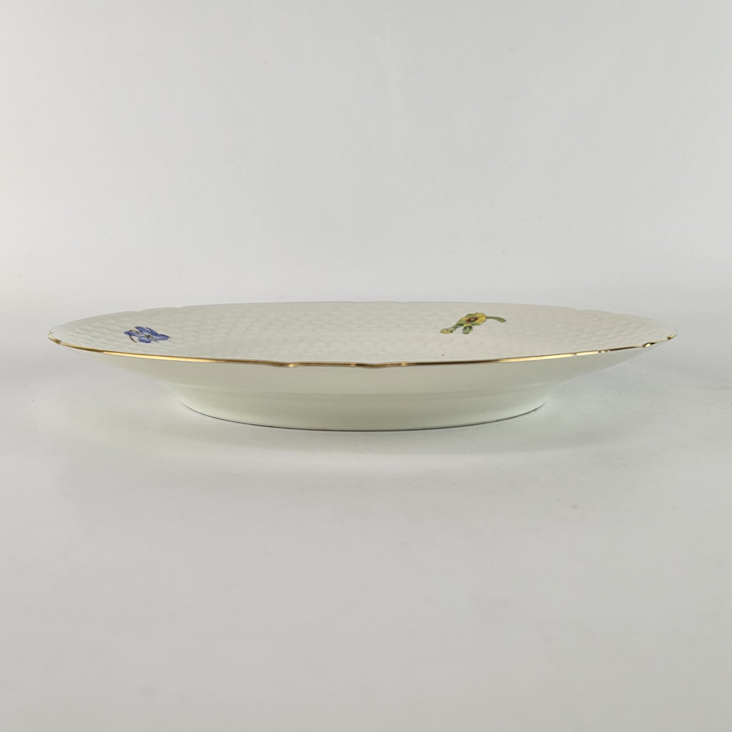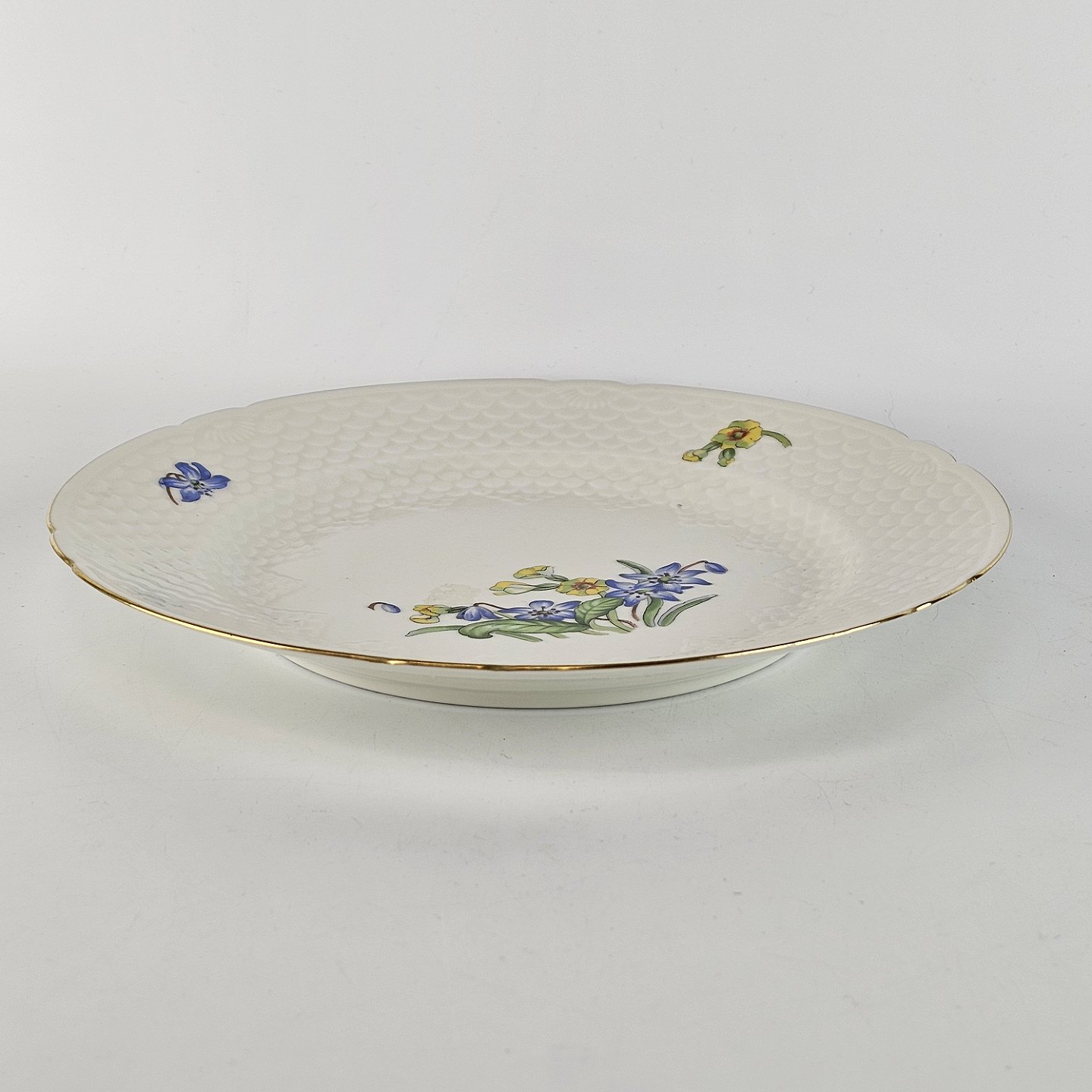 Njal er af creme farvet glaseret porcelæn, præget med skæl lignende mønster. Stellet er dekoreret med gul og blå blomster samt mønster af guld i kanten. Lettere brugsspor kan forekomme