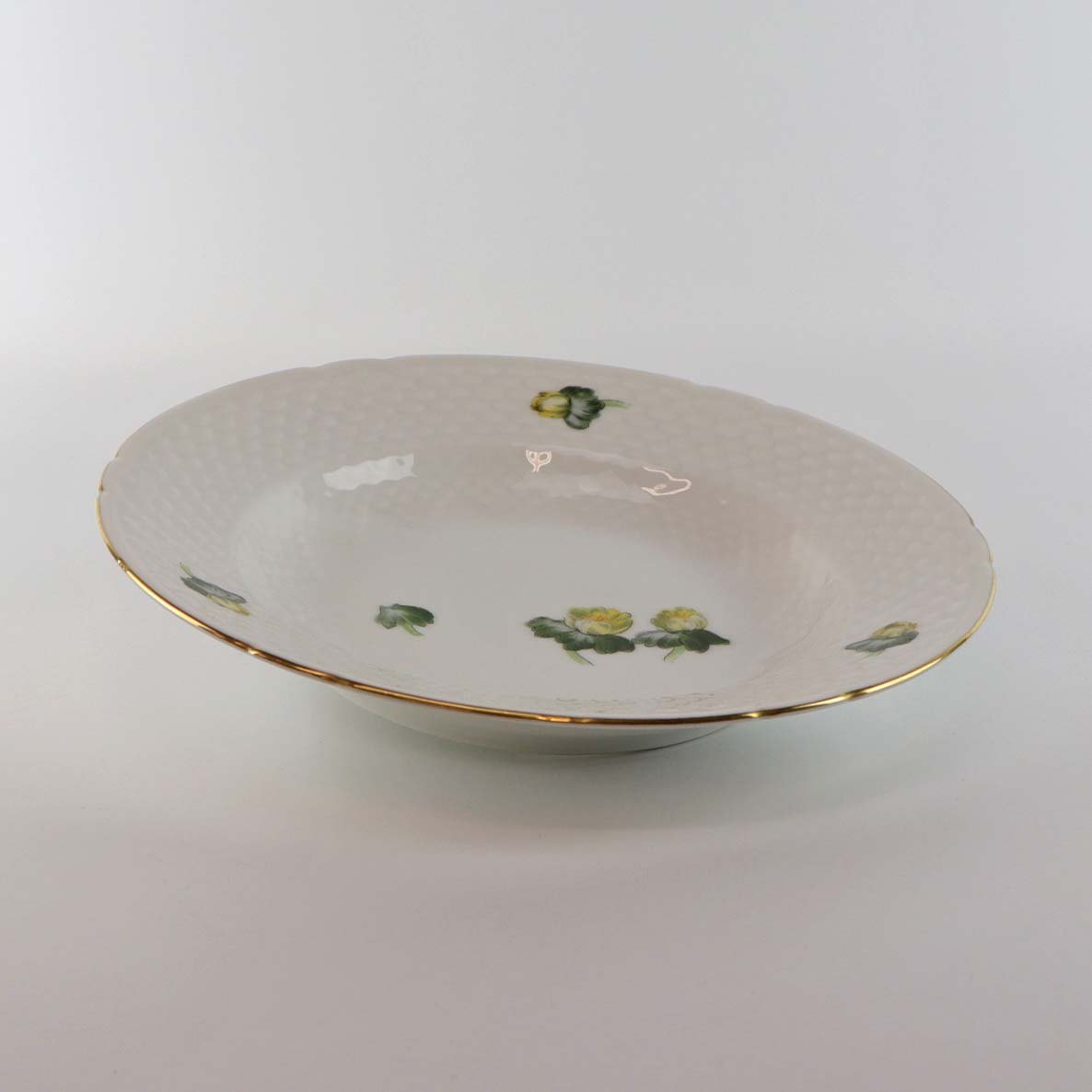Dyb tallerken med bred kant i porcelæn fra stellet Erantis. Nr. 23