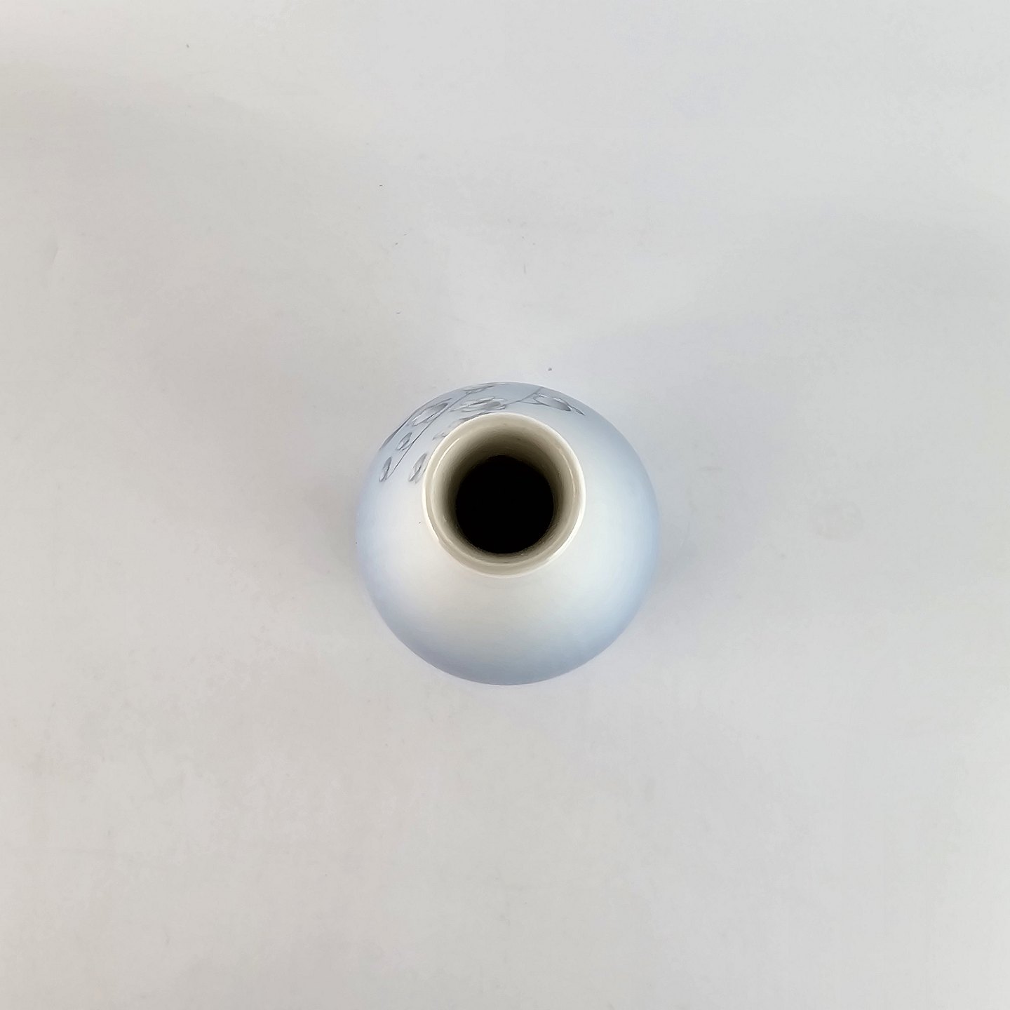Stellet er fra 1970 og udformet i glat porcelæn med gradueret blålig tone samt motiv af en liljekonval.