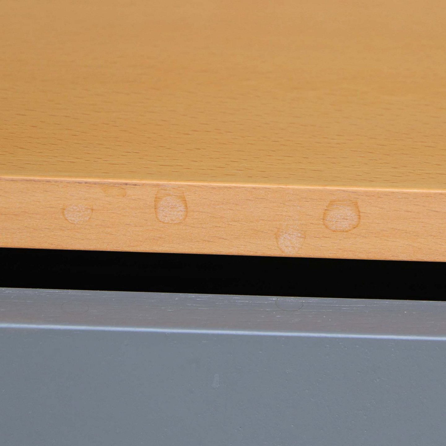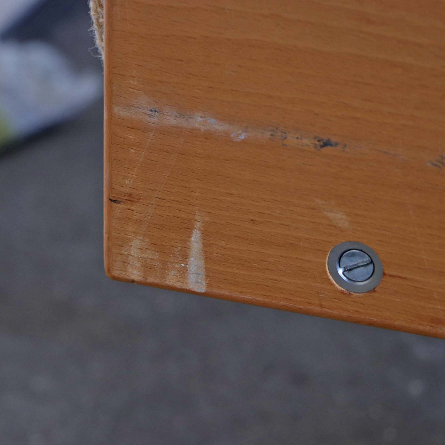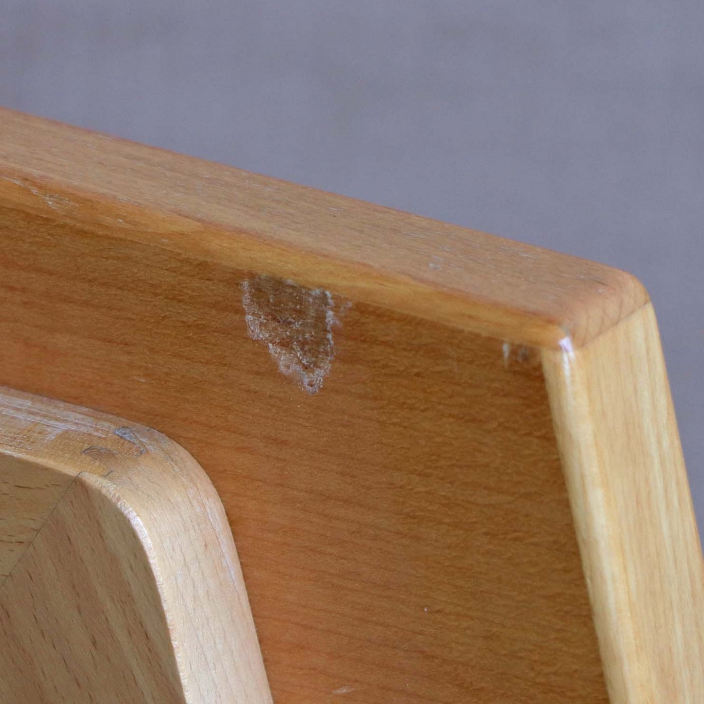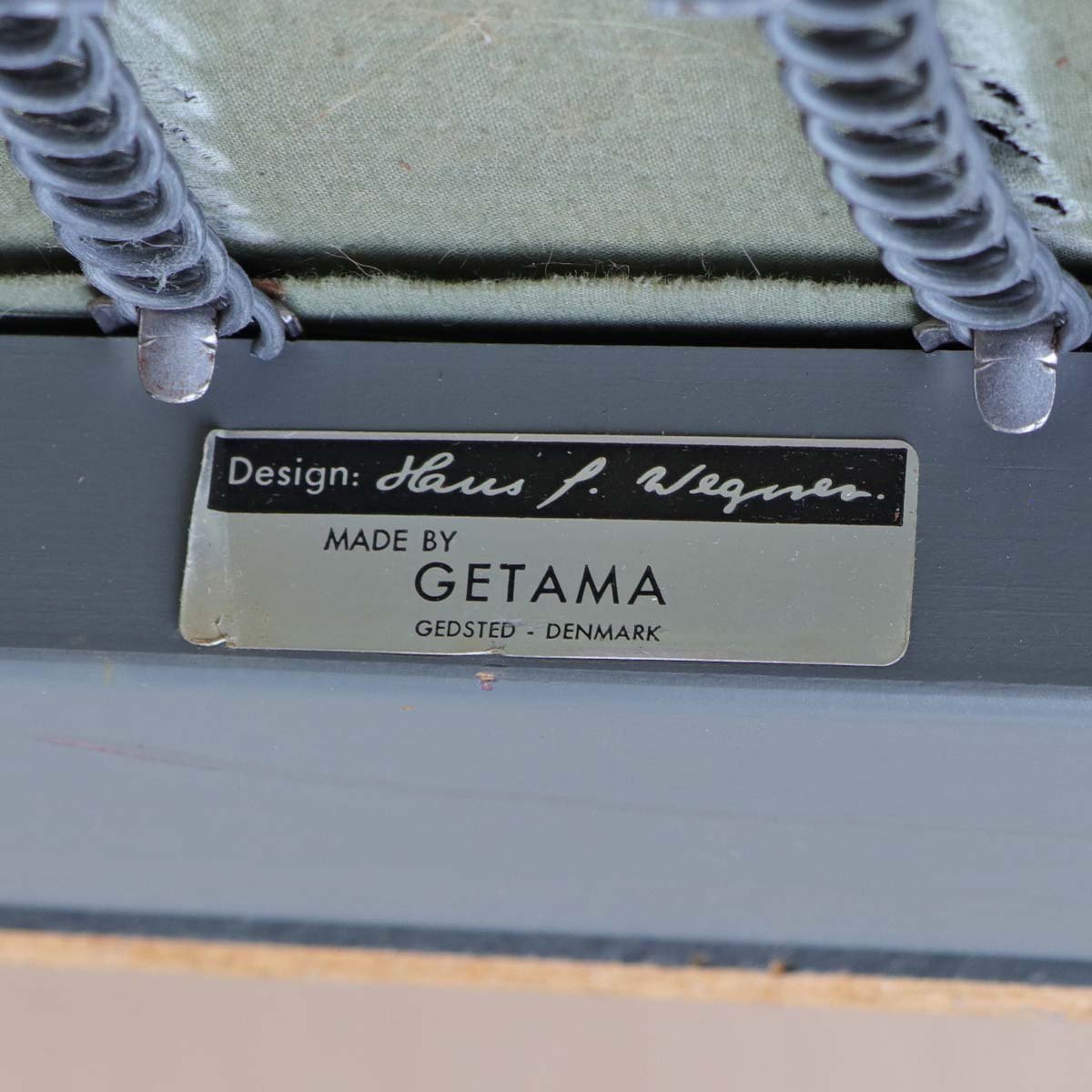 Tre personers sofa med stel i lakeret bøgetræ. Sæde og ryglæn er betrukket med meleret beige uldstof. Model GE-258