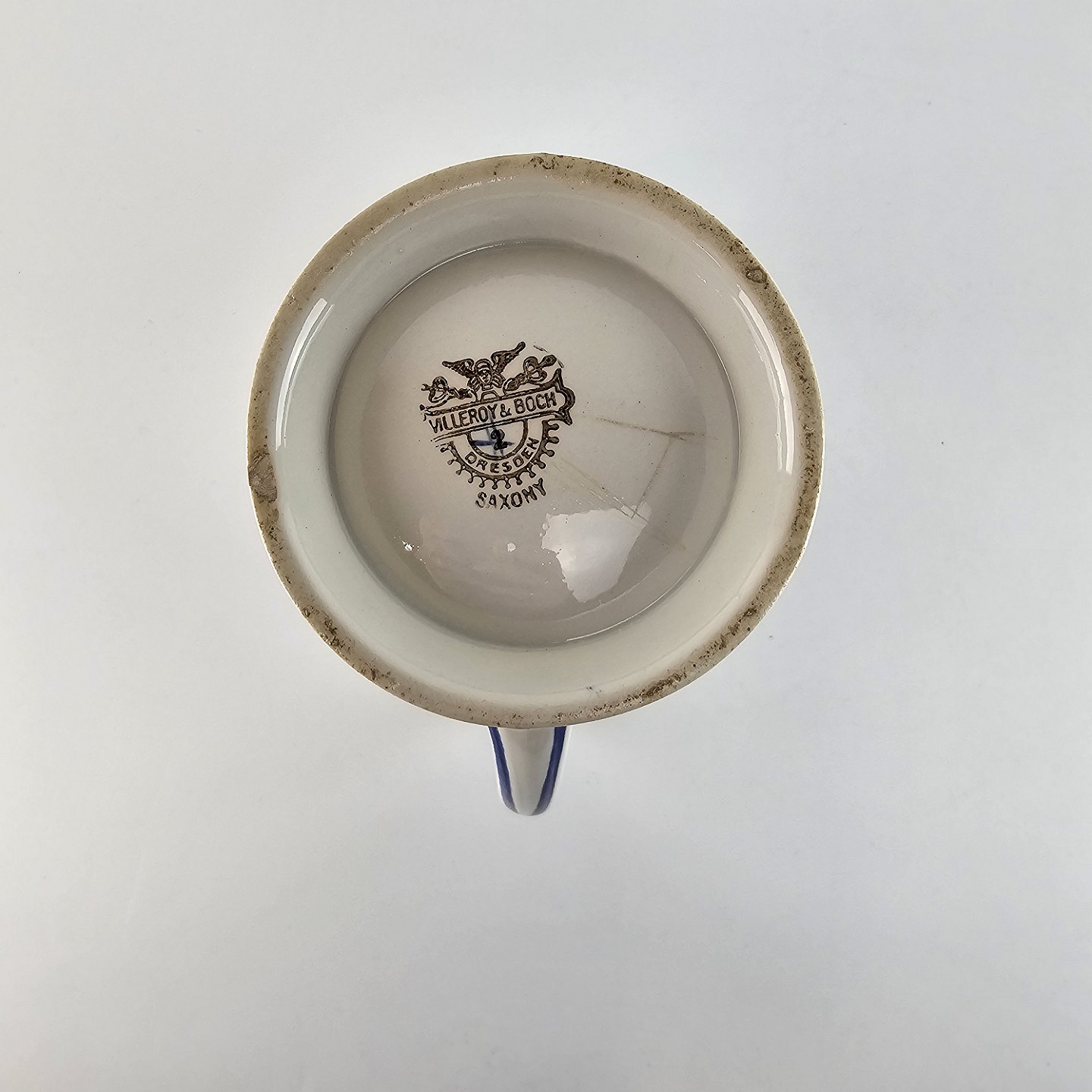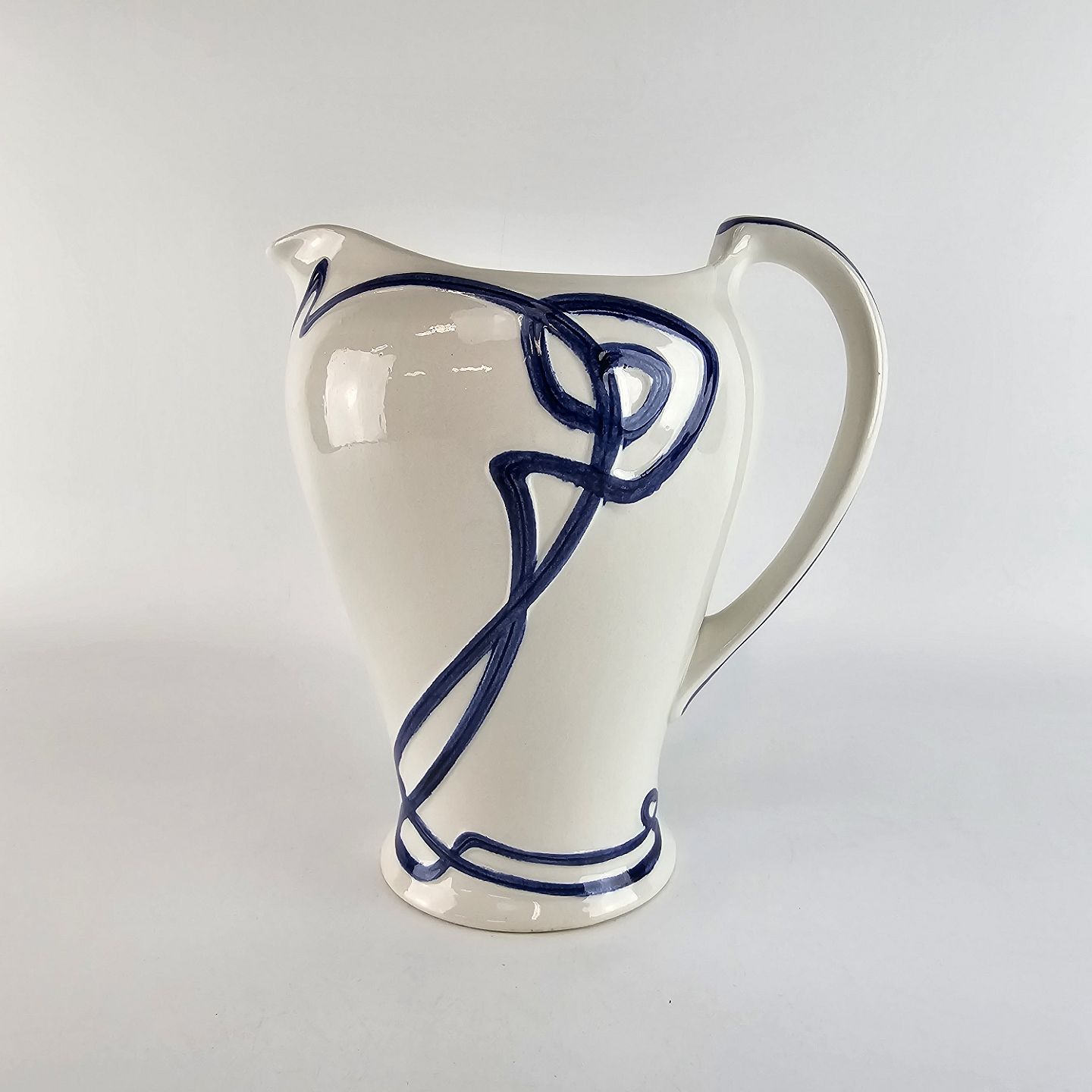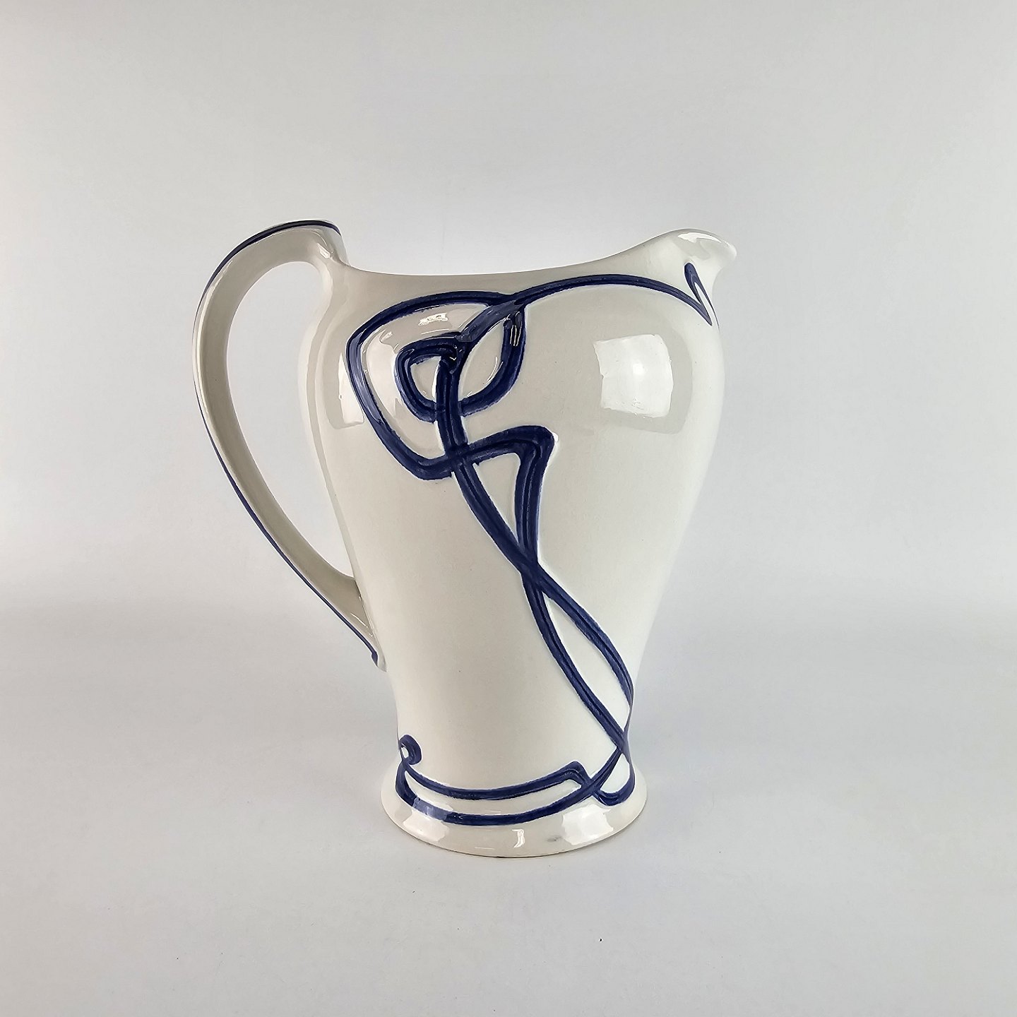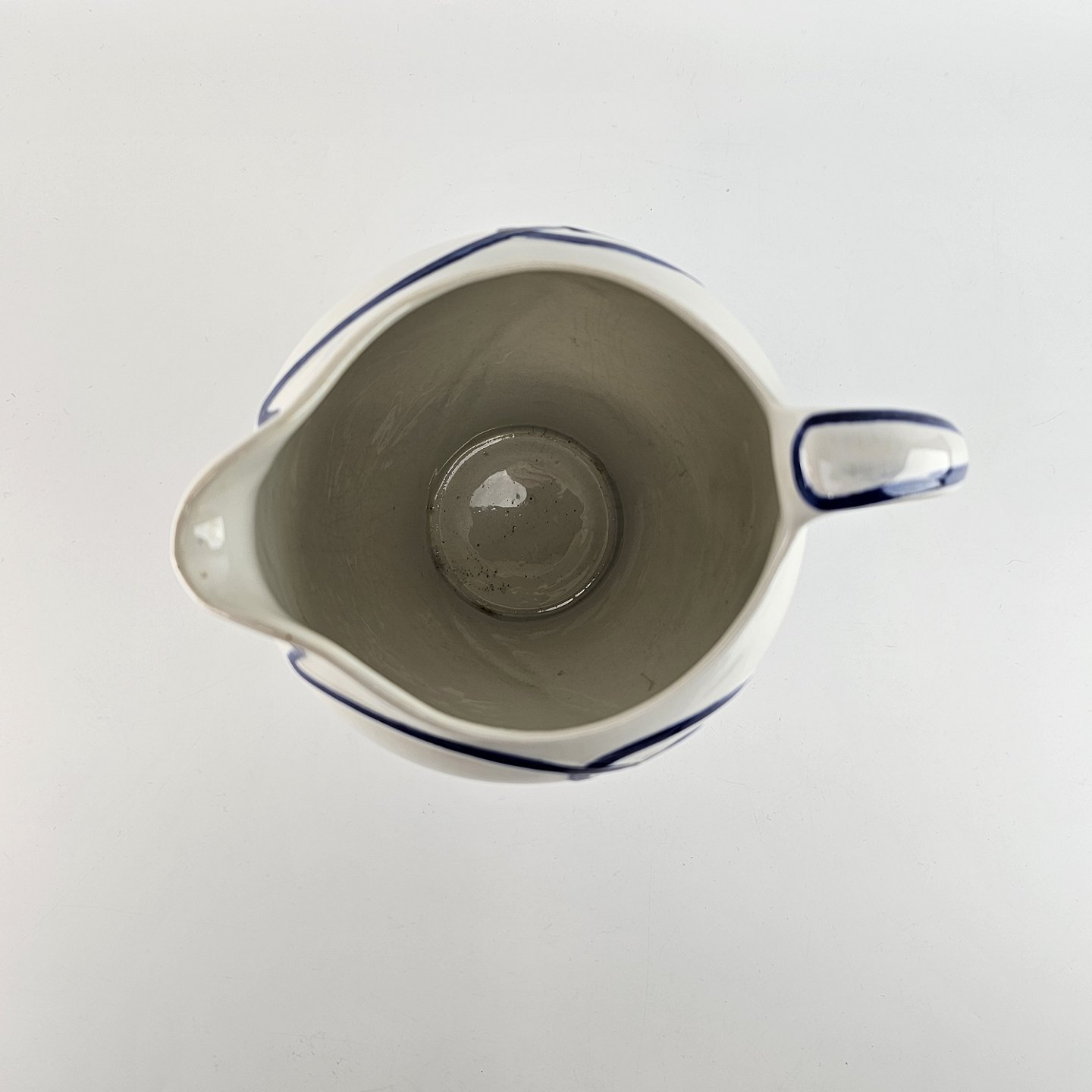 Blå Olga er hvid fajance dekoreret med blå abstrakt mønster langs kanten
