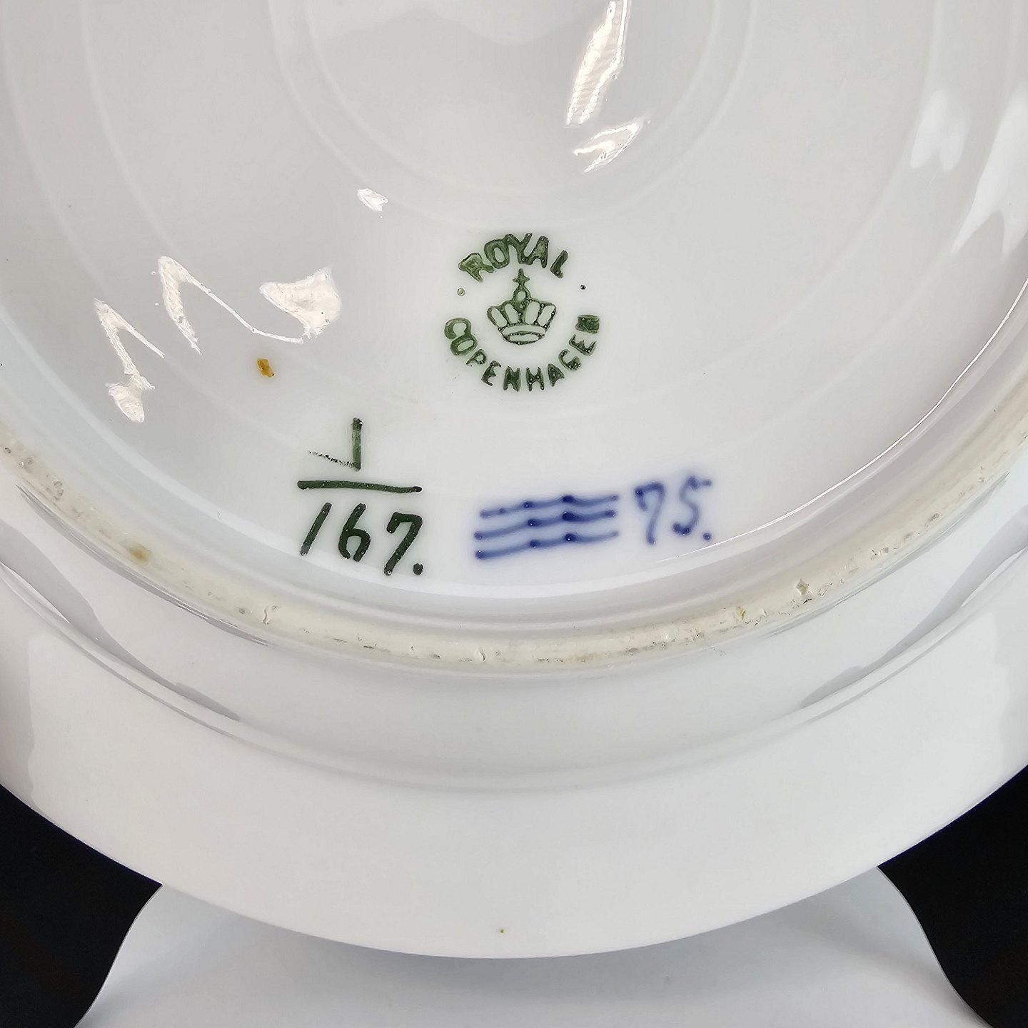 Kgl dyb tallerken fra stellet Musselmalet, riflet. Nr 1/167.