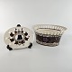Oval jardiniere med låg i fajance. Blomsterskålen er med brun og lilla dekoration på en lys baggrund. Nr. 863/720