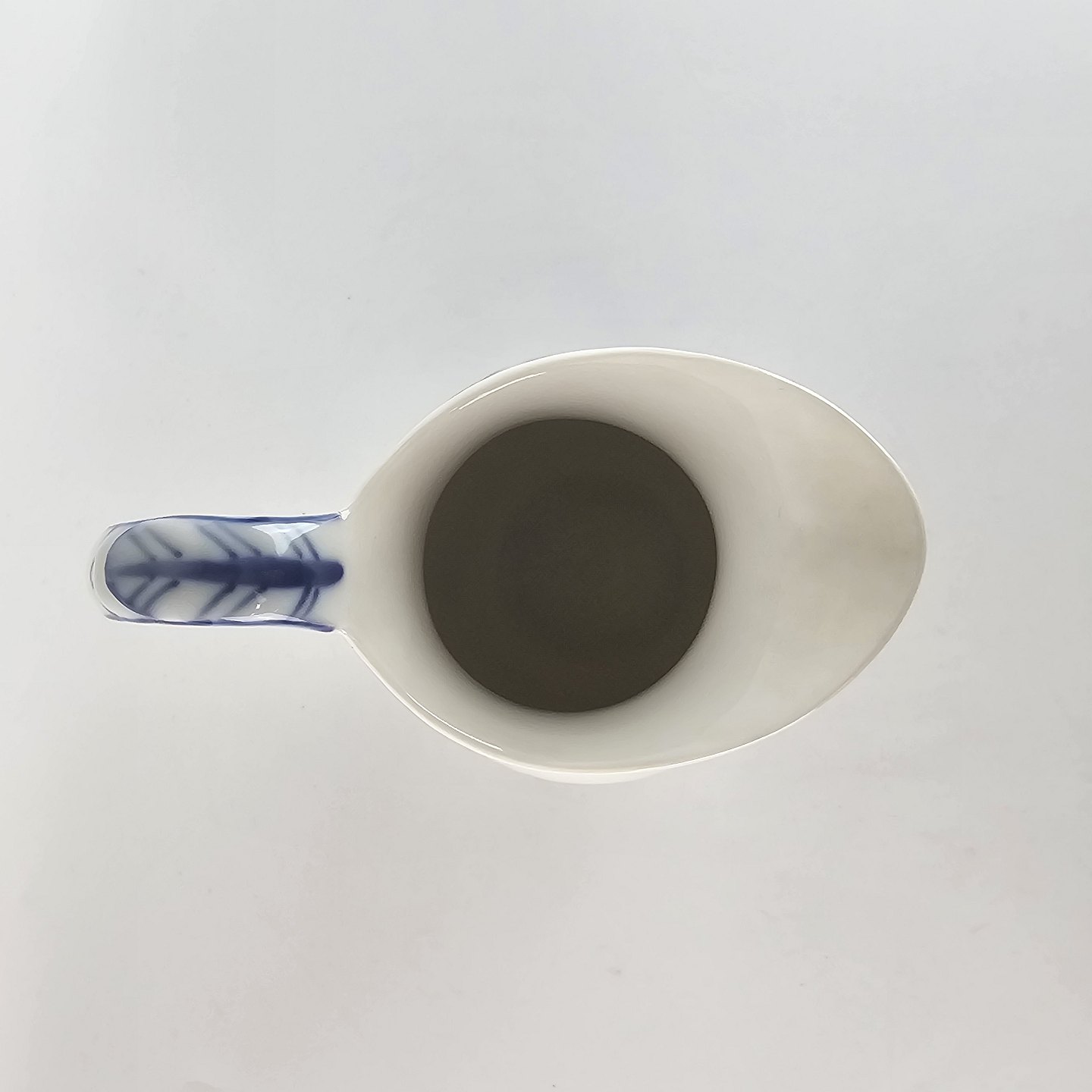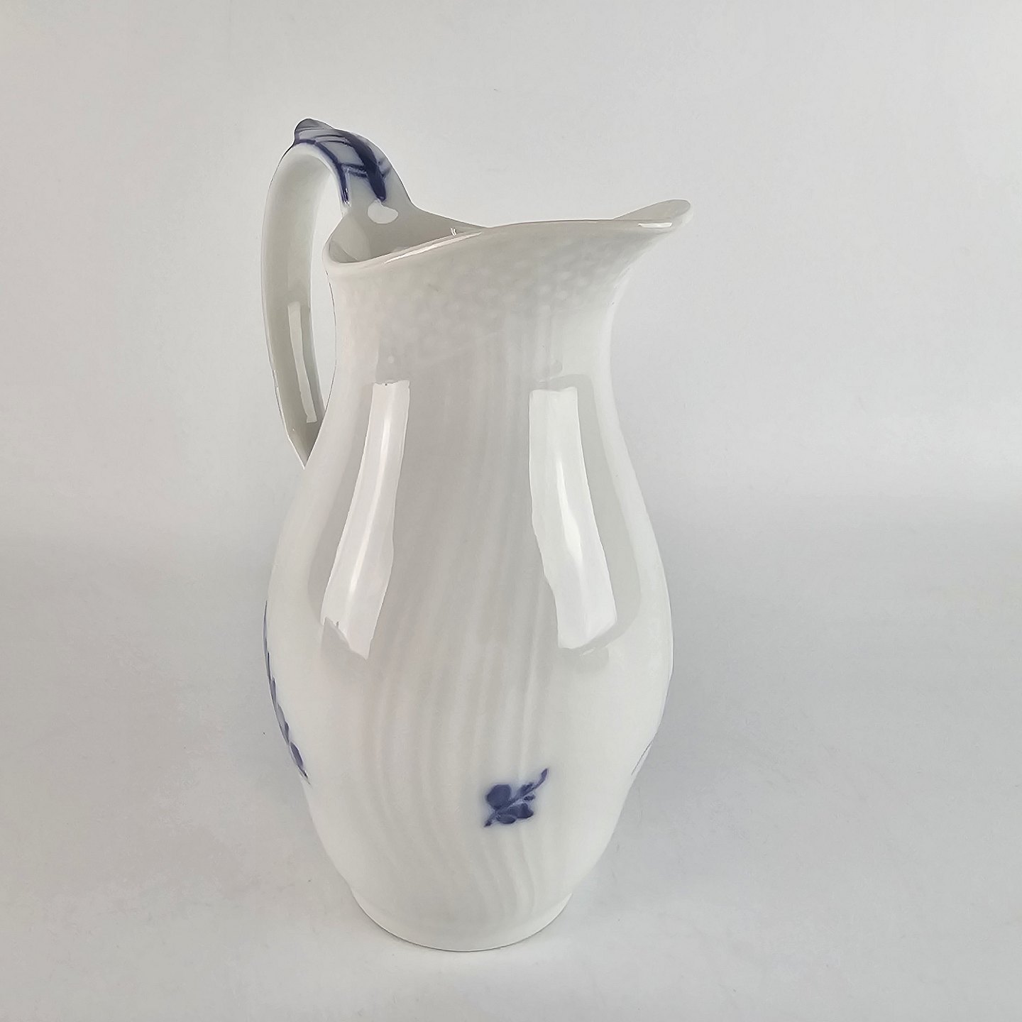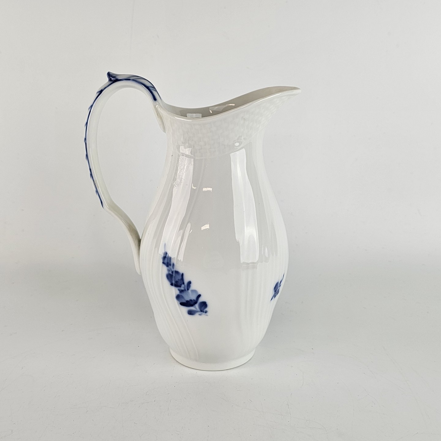 Glat hvidt porcelæn med flettet og dekoreret med blå blomster