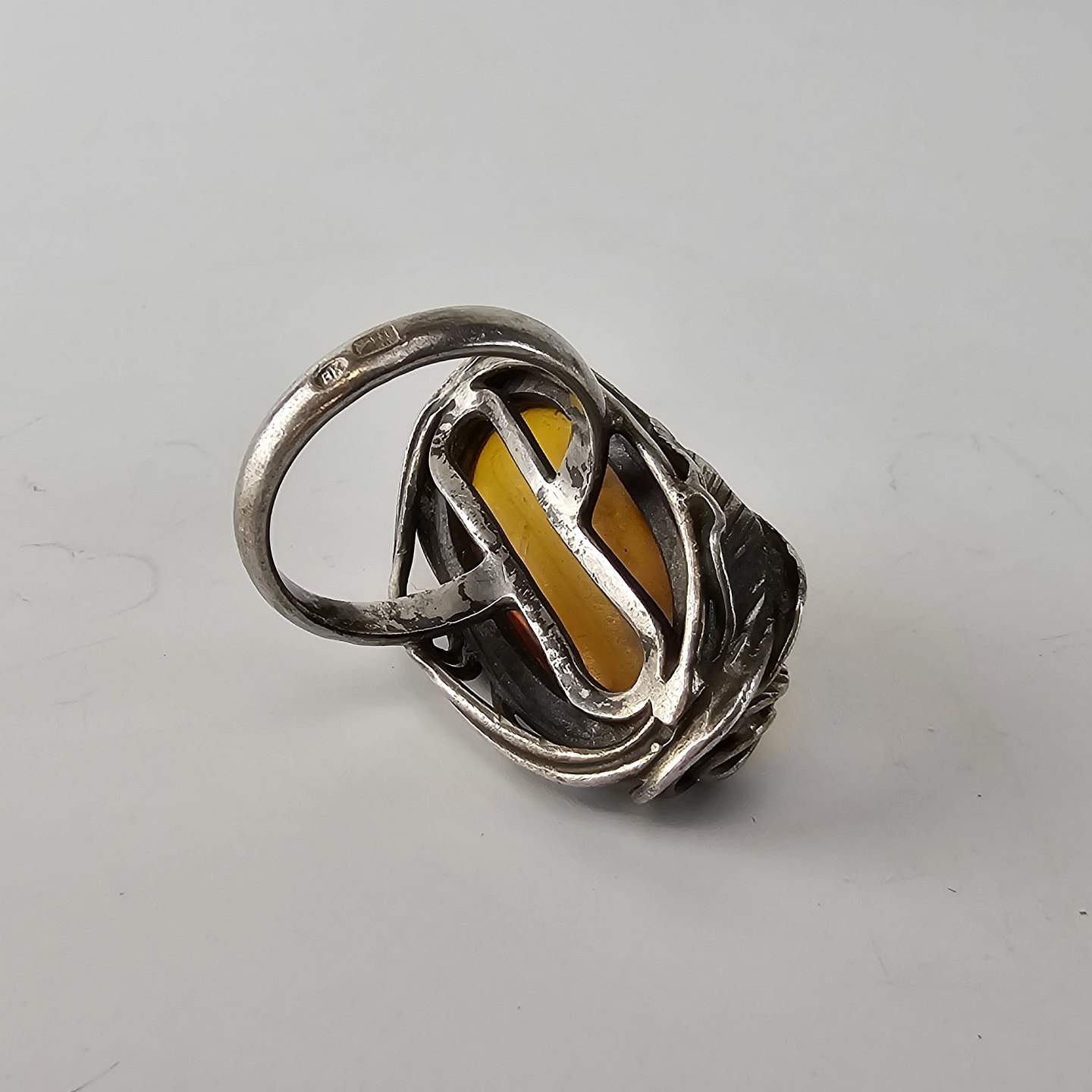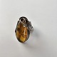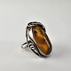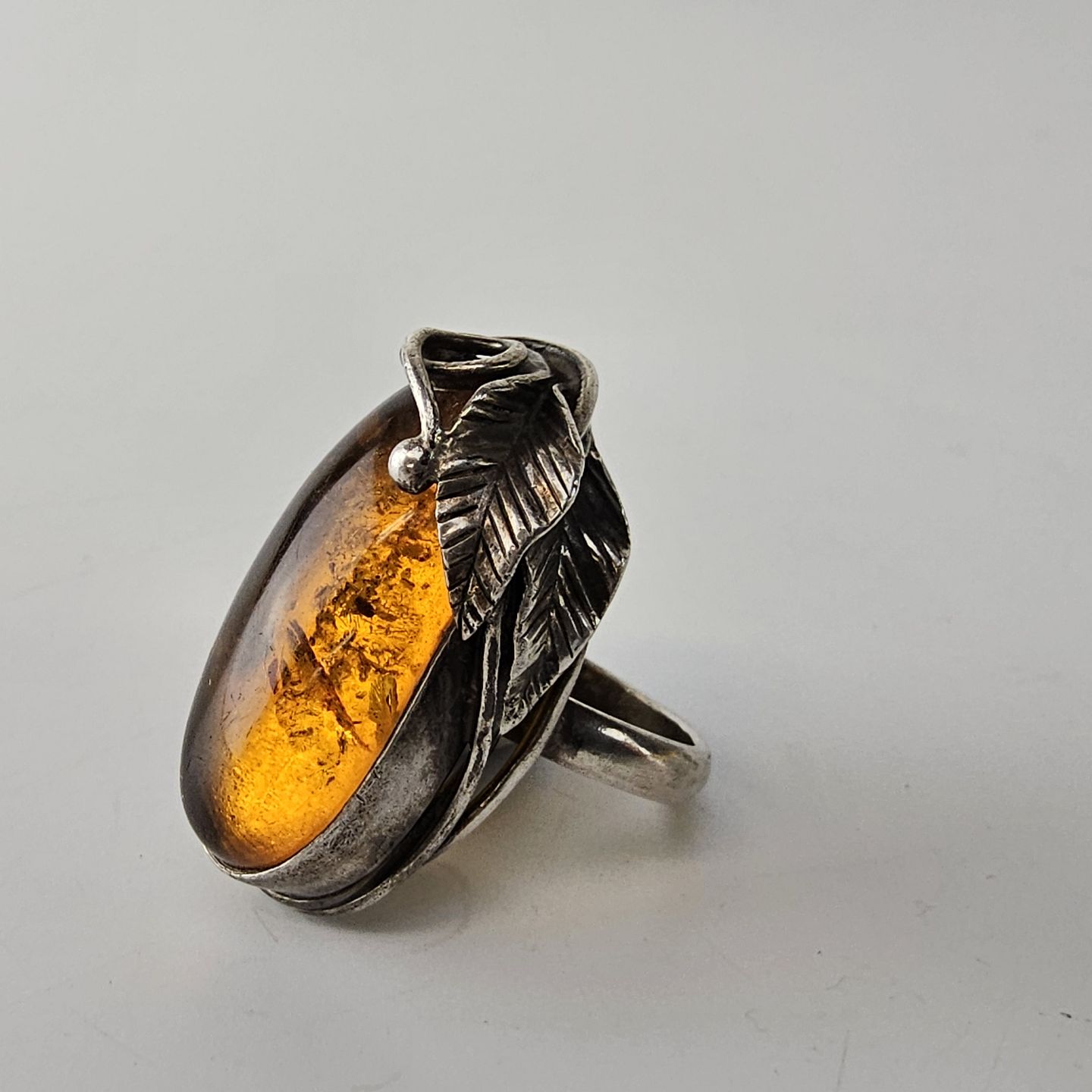Fingerring i sterling sølv med Rav og blade. Størrelse 54