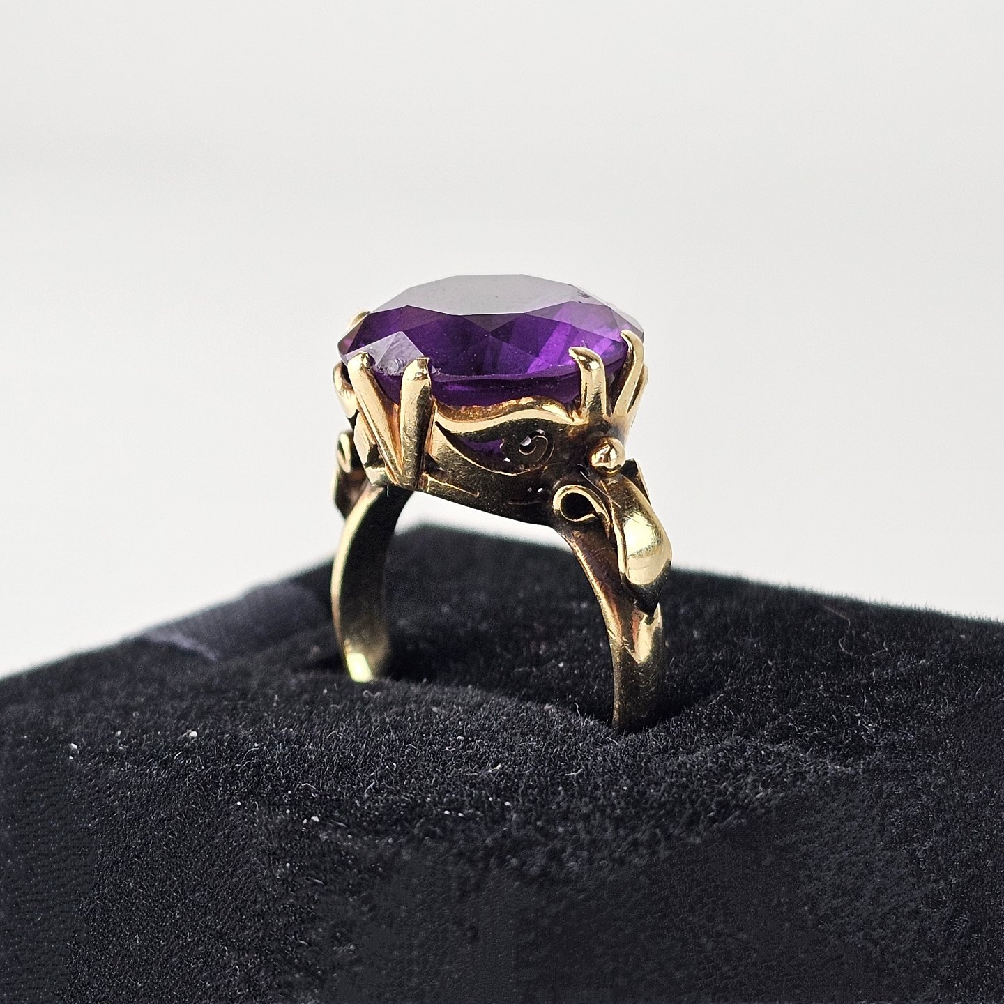 Guldring i 14 karat med amethyststen. Størrelse 54