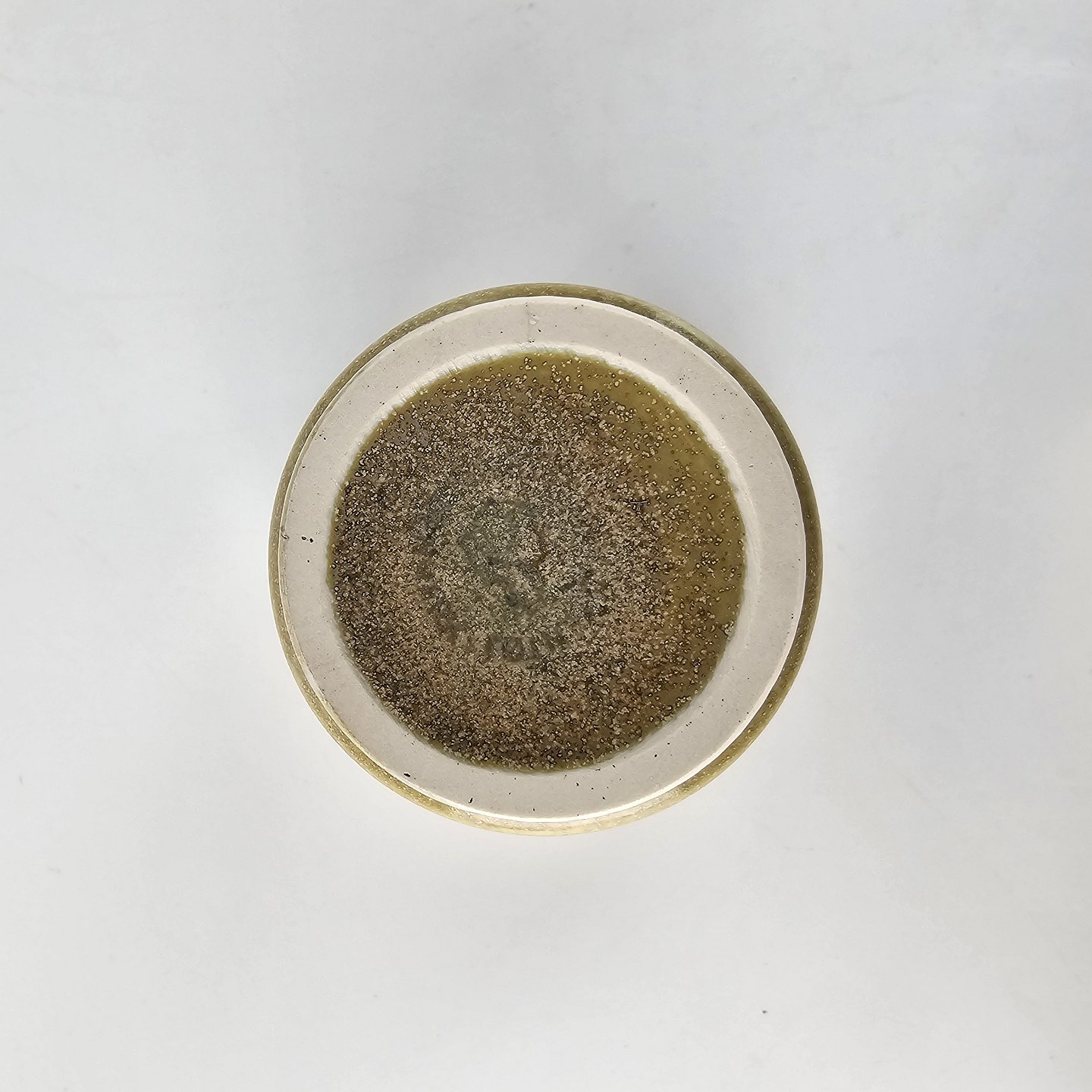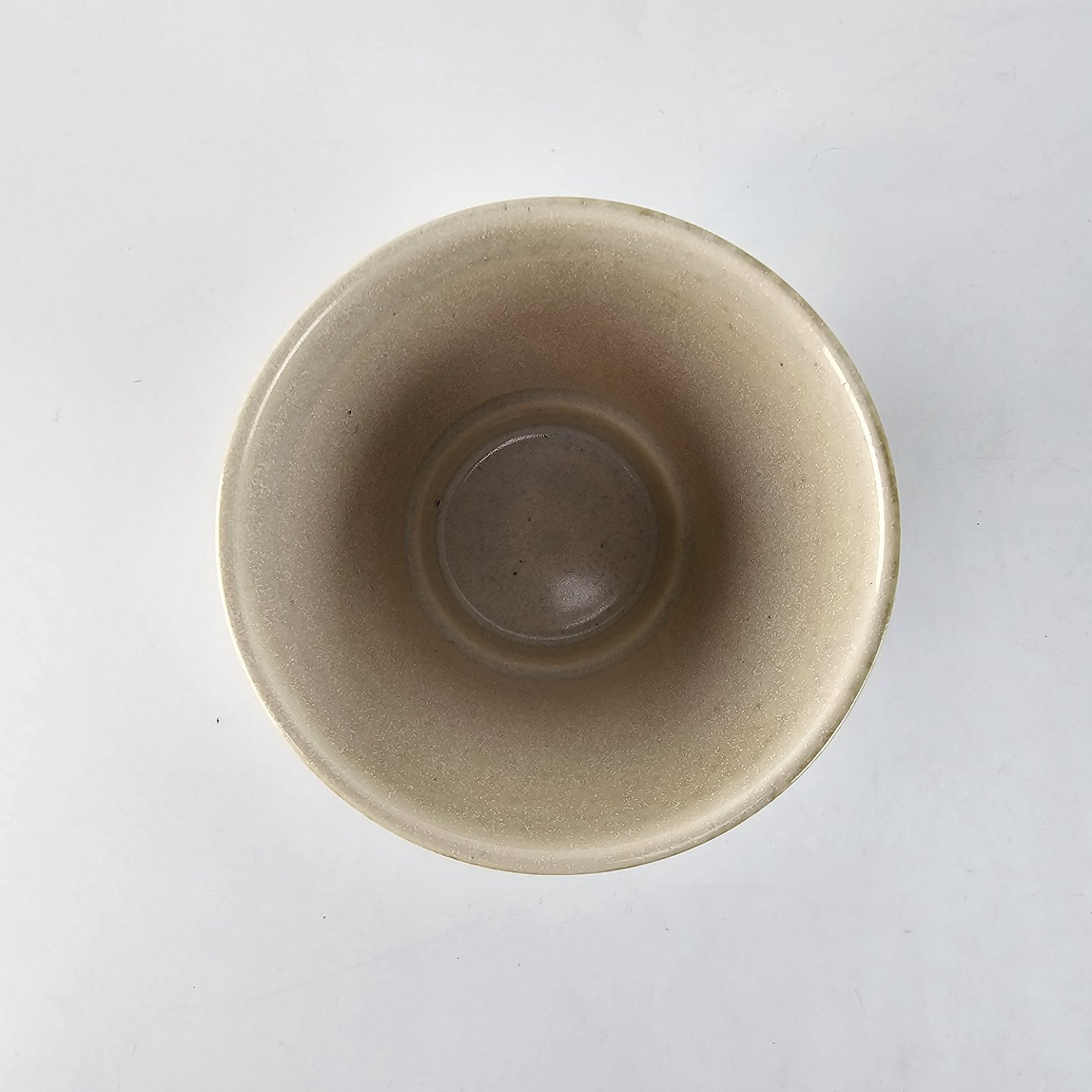Kop af stentøj og dekoreret med en grønlig nuance glasering.
