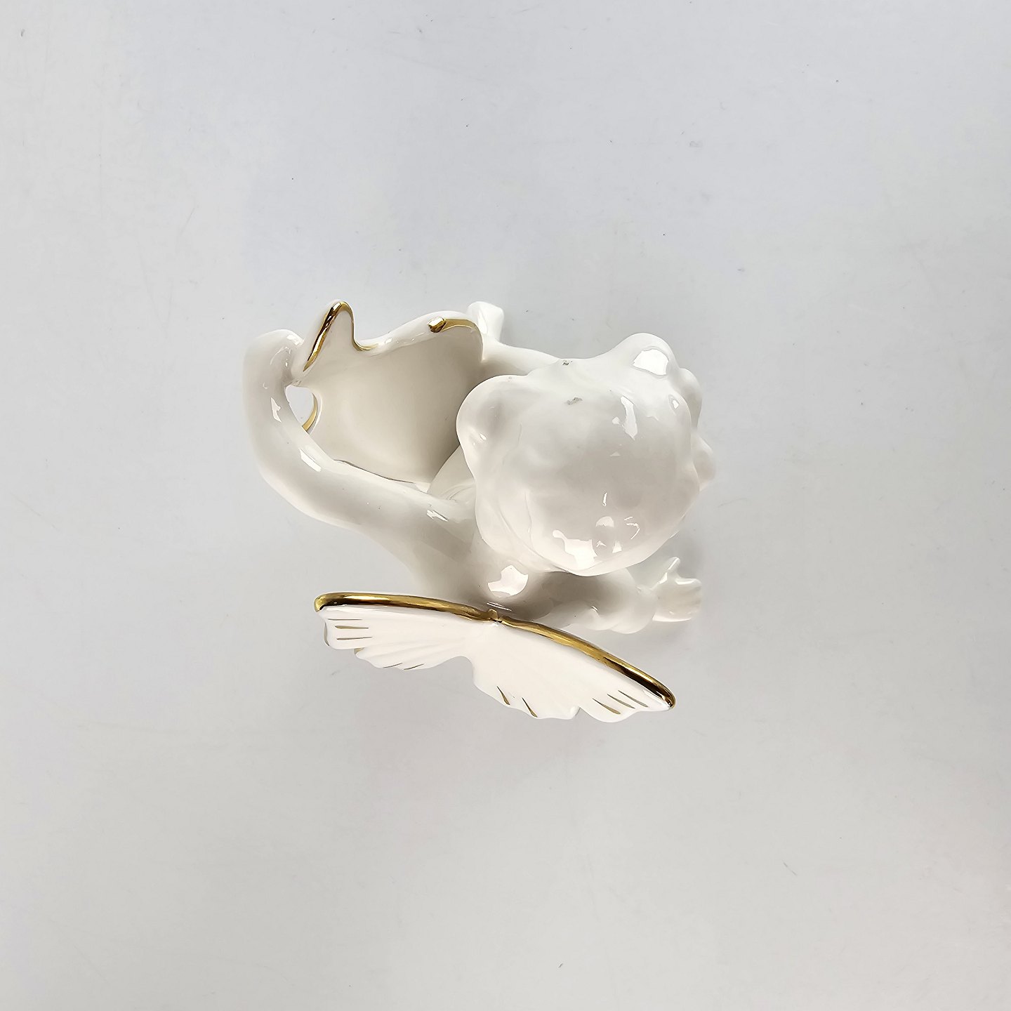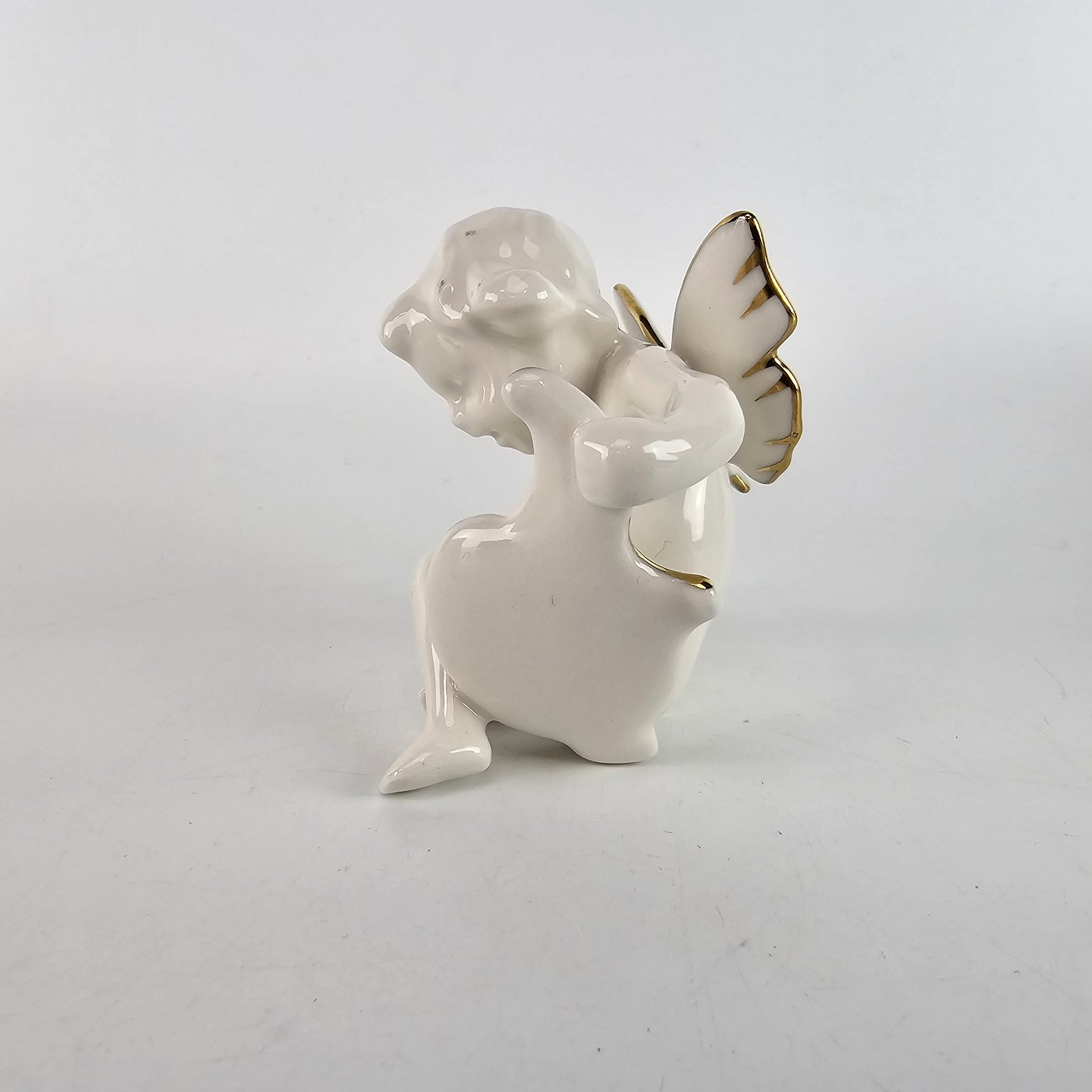 Kongelig lille hvid porcelænsengel med horn fra Royal Copenhagen. Guld detaljer.