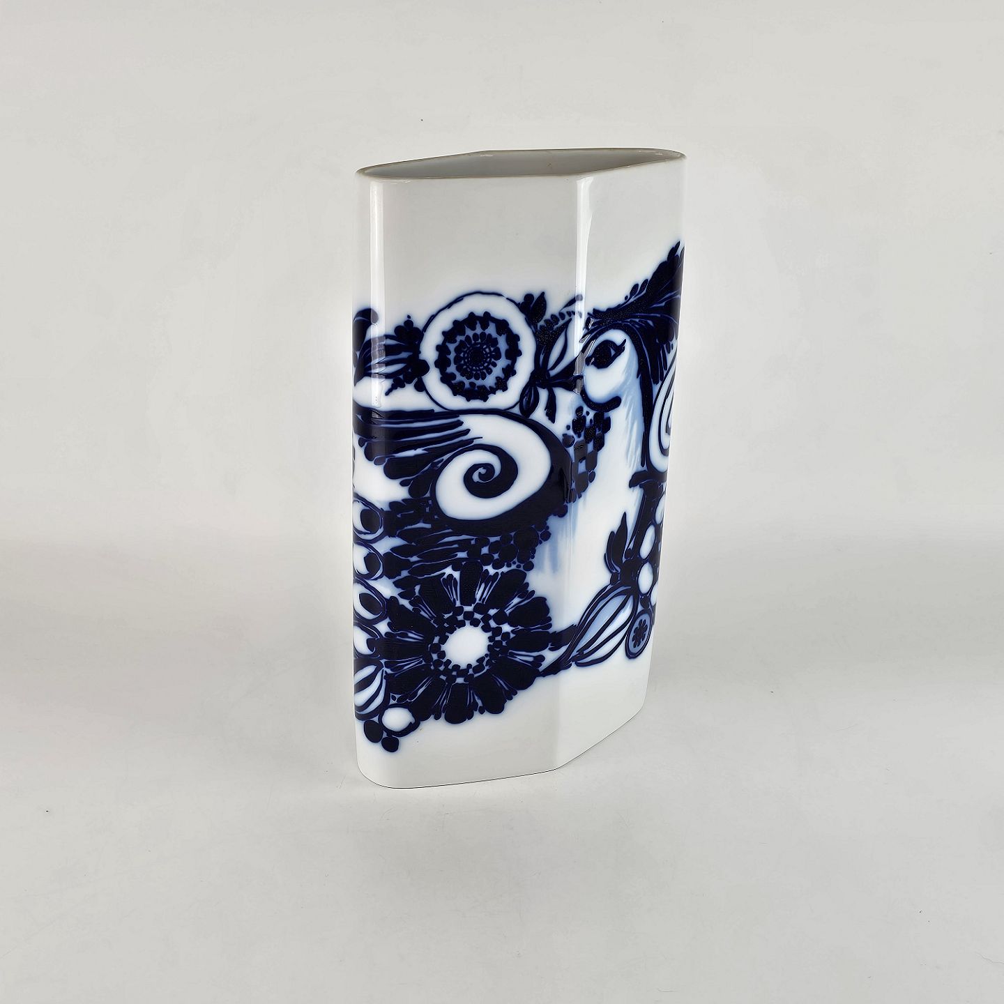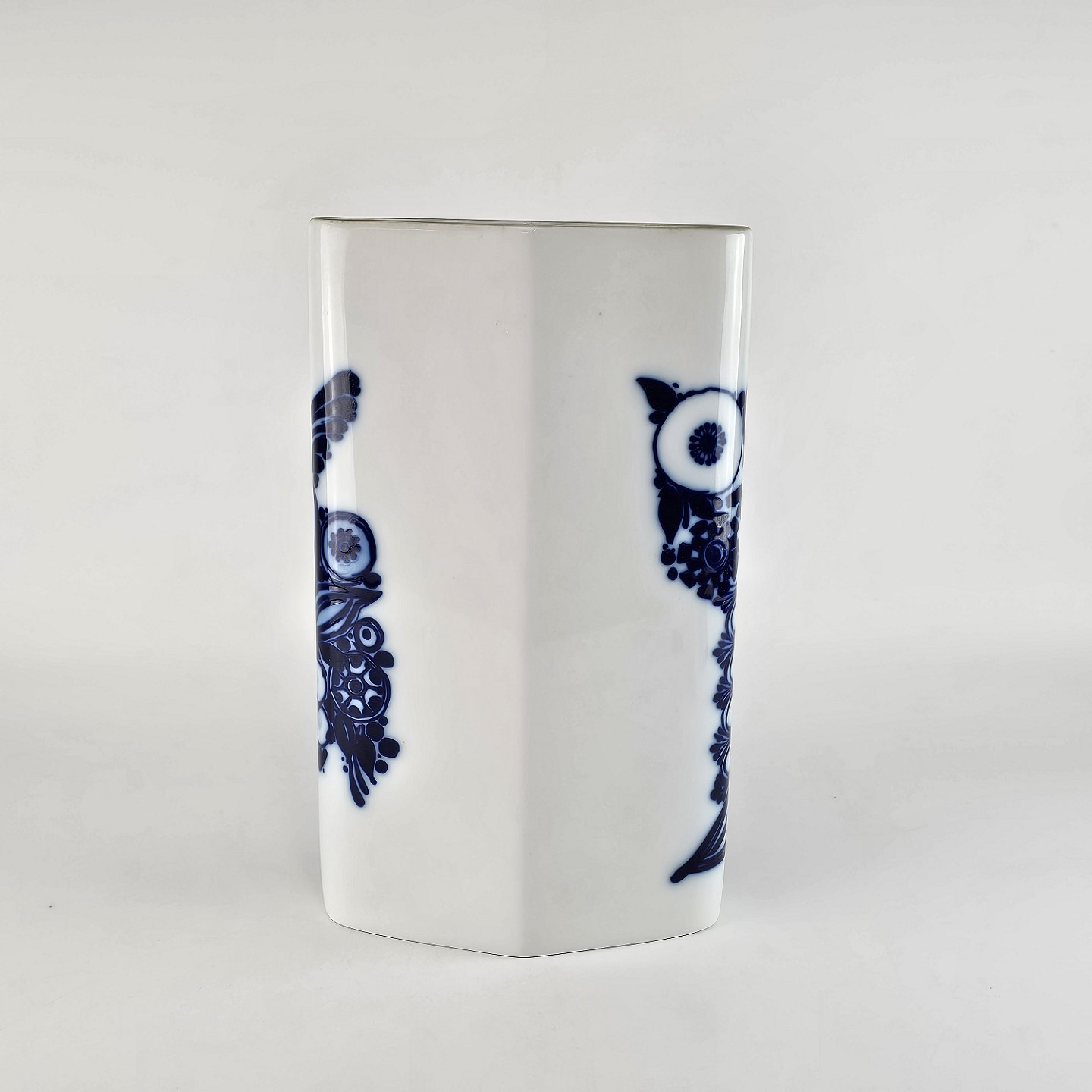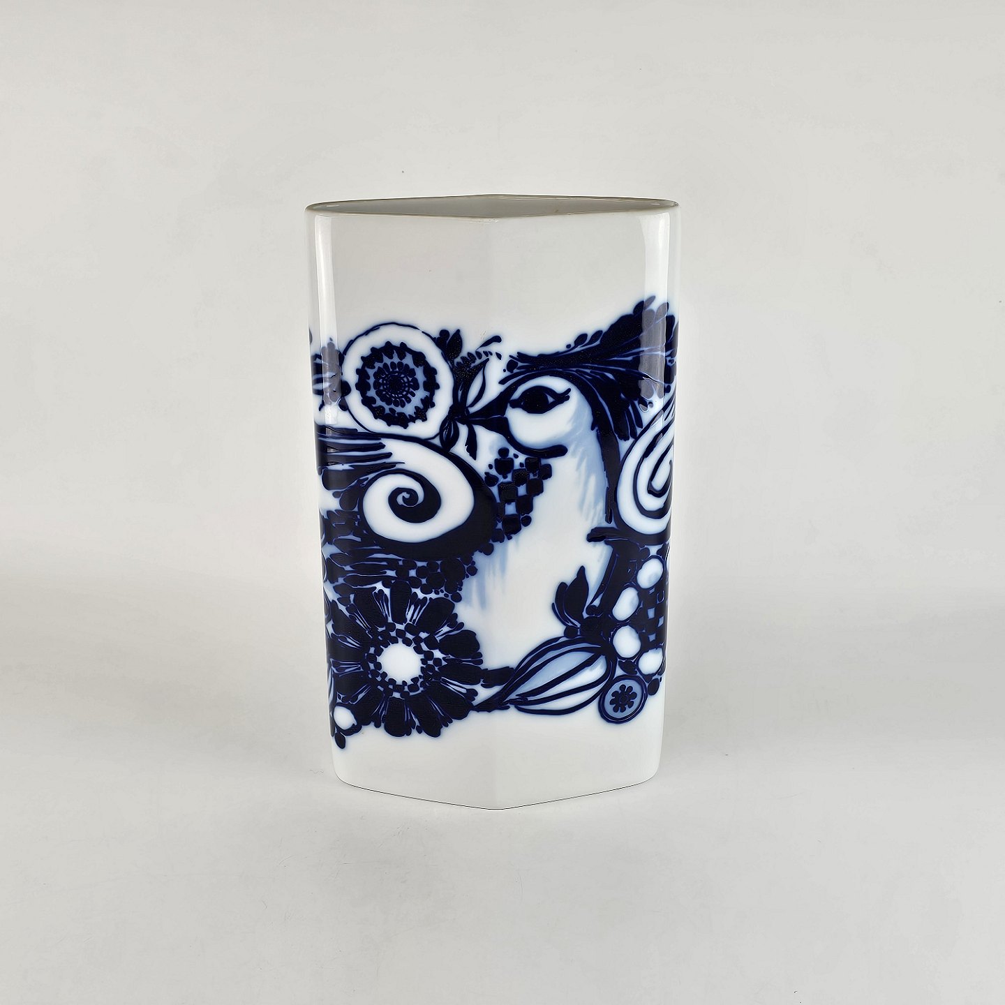Høj, rudeformet Rosenthal vase med motiv af påfugl.