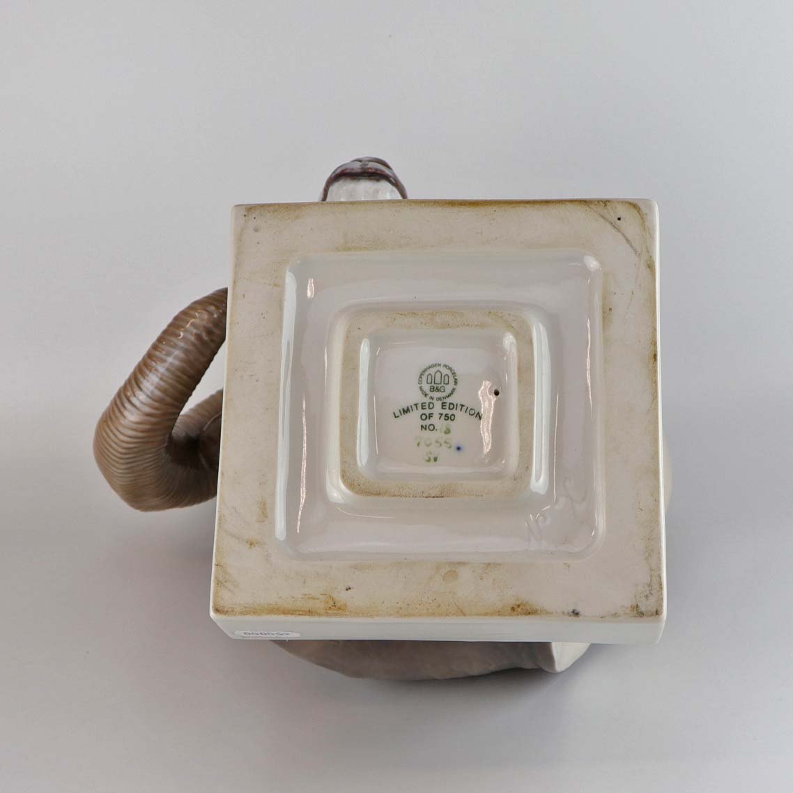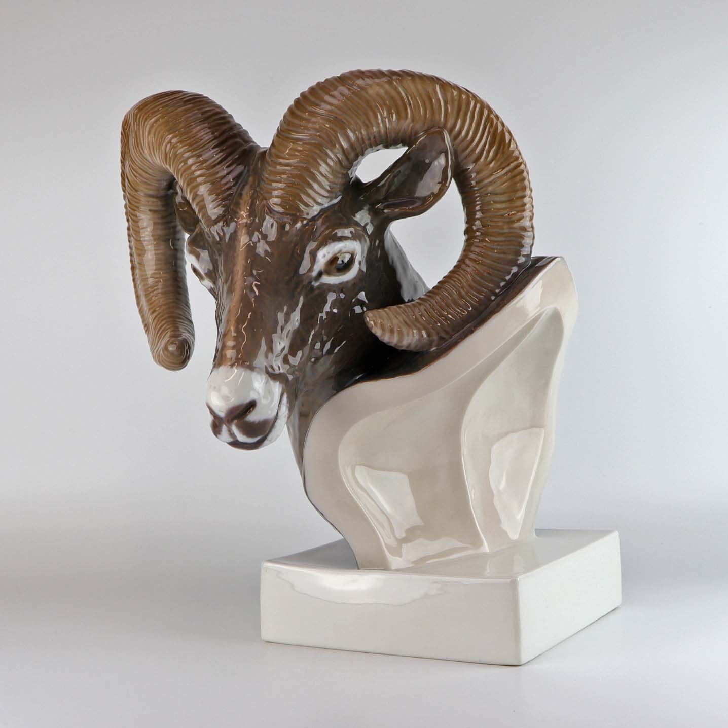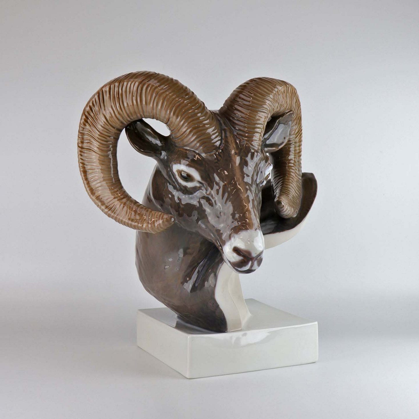 Stor figur i porcelæn med motiv af vædderhoved. Figuren er fremstillet i et begrænset antal. Denne er nr. 18 ud af 750 eksemplarer. Nr. 7055