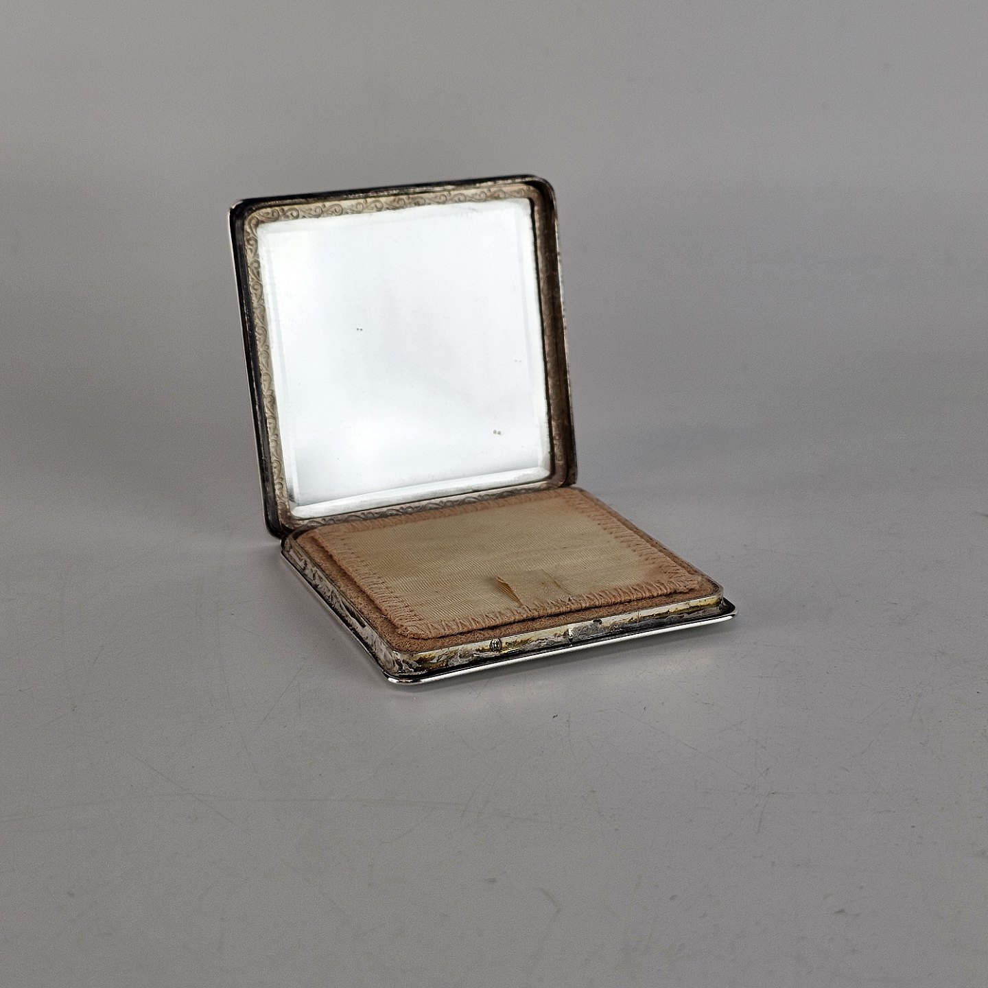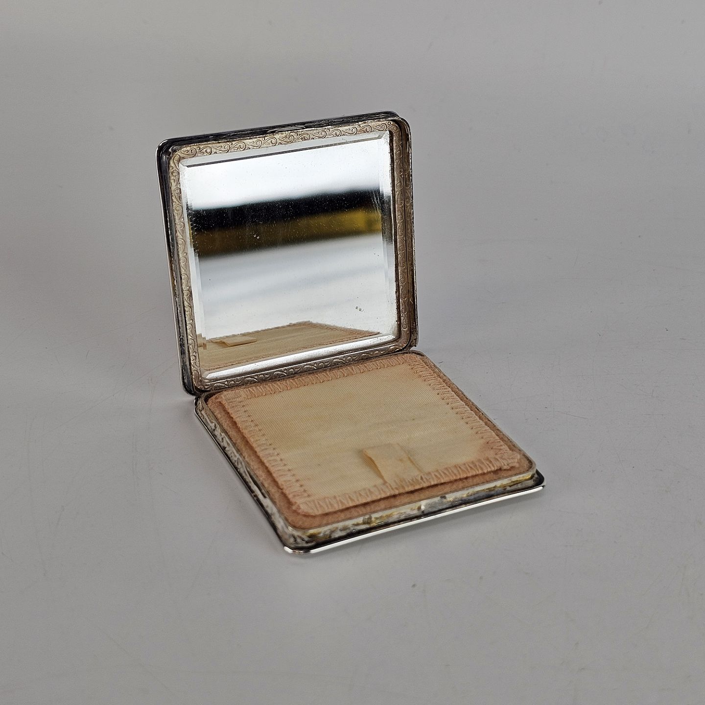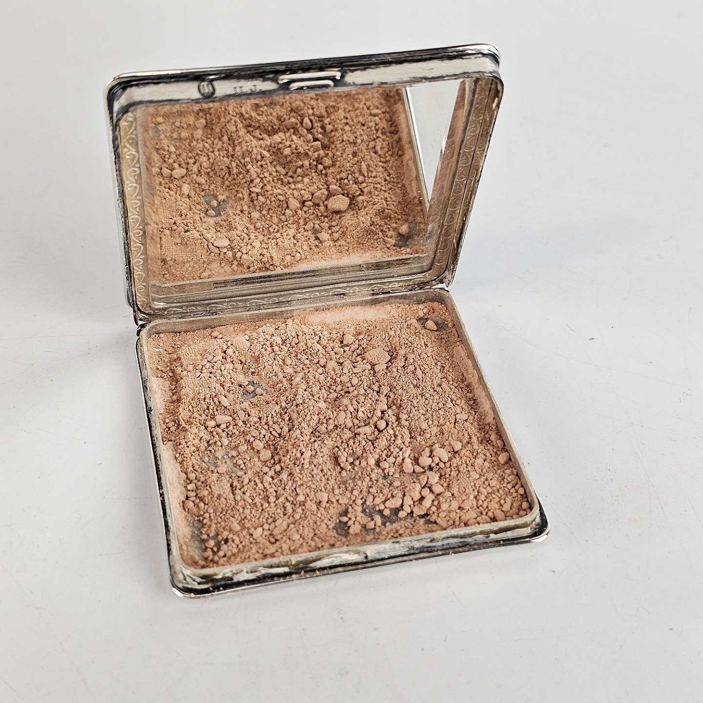 Firkantet pudderdåse i tretårnet sølv.