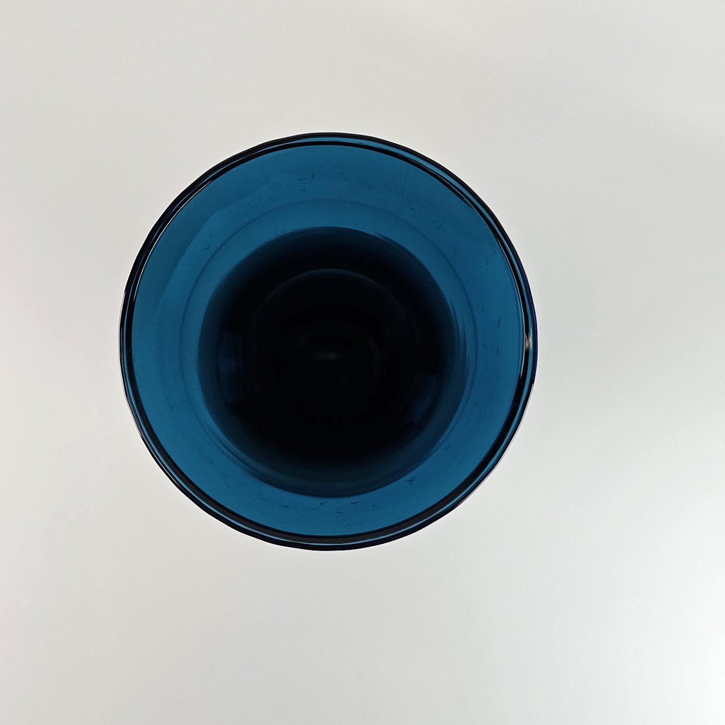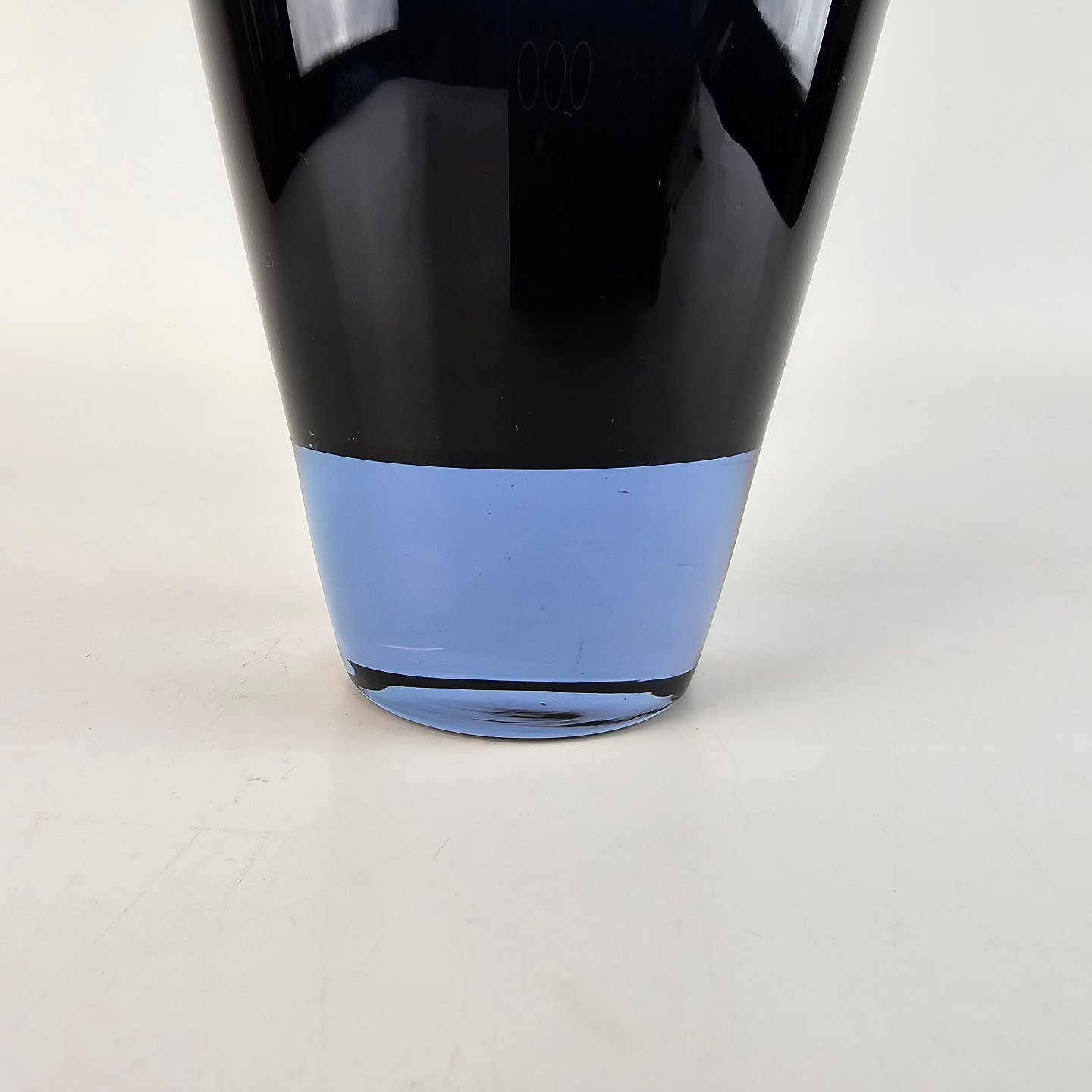 Harlekin vase i gennemsigtigt blåt glas med en sjov detalje med klart glas i bunden.