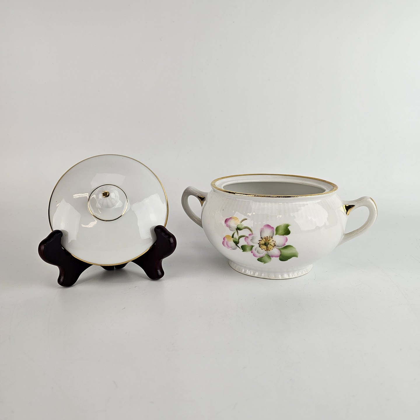 Sukkerskål i porcelæn fra stellet æbleblomst.