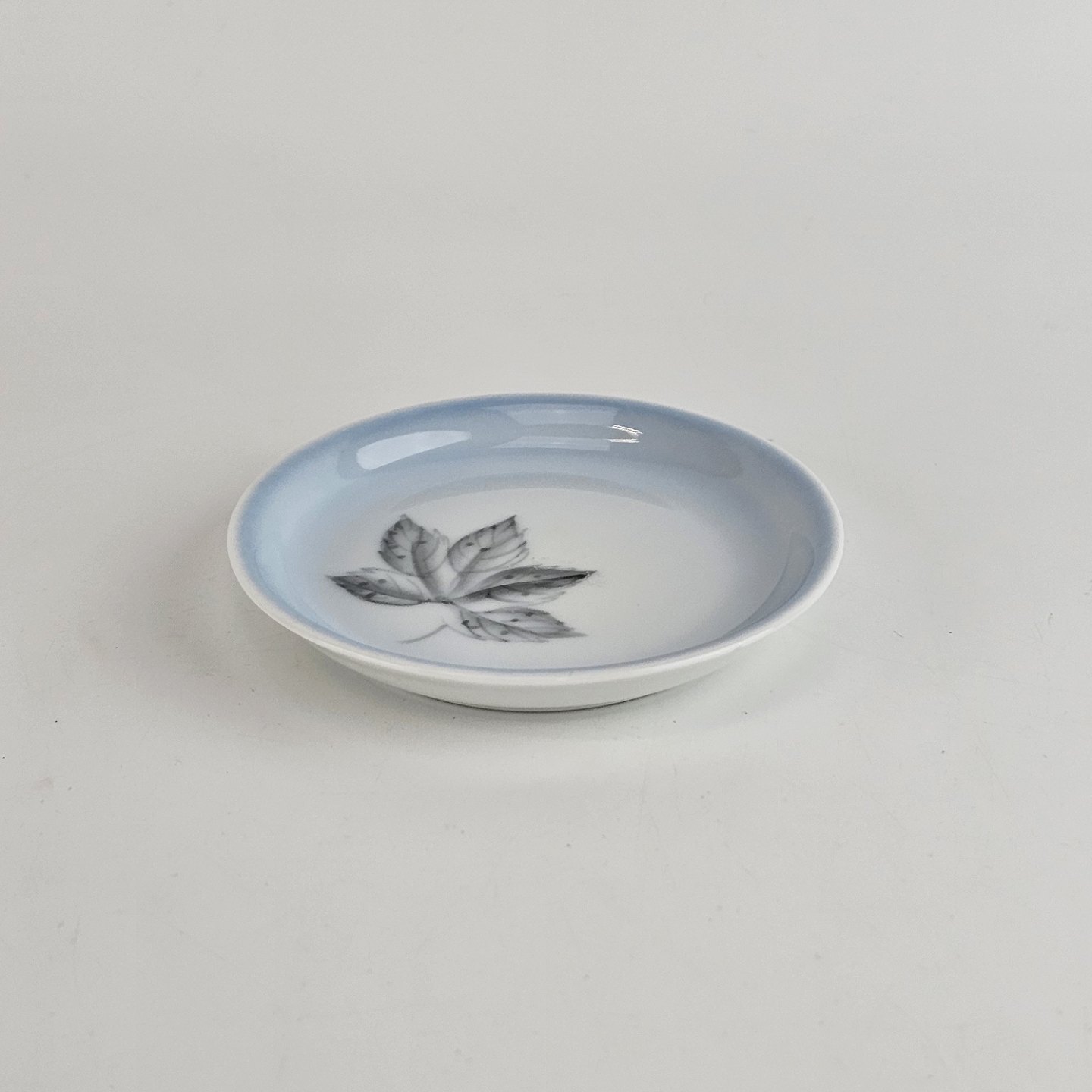 Rund smørasiet i porcelæn fra stellet Løvfald. Nr 30.