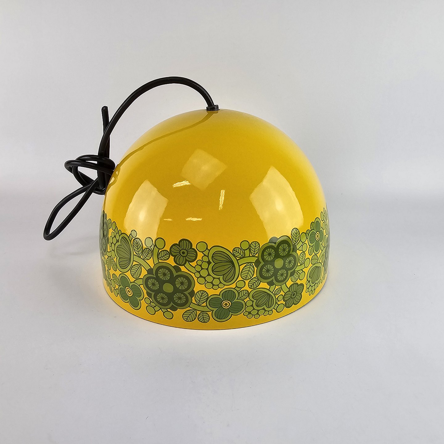 Arabia kalas pendel, i emalje. Gul med grønne blomster.
