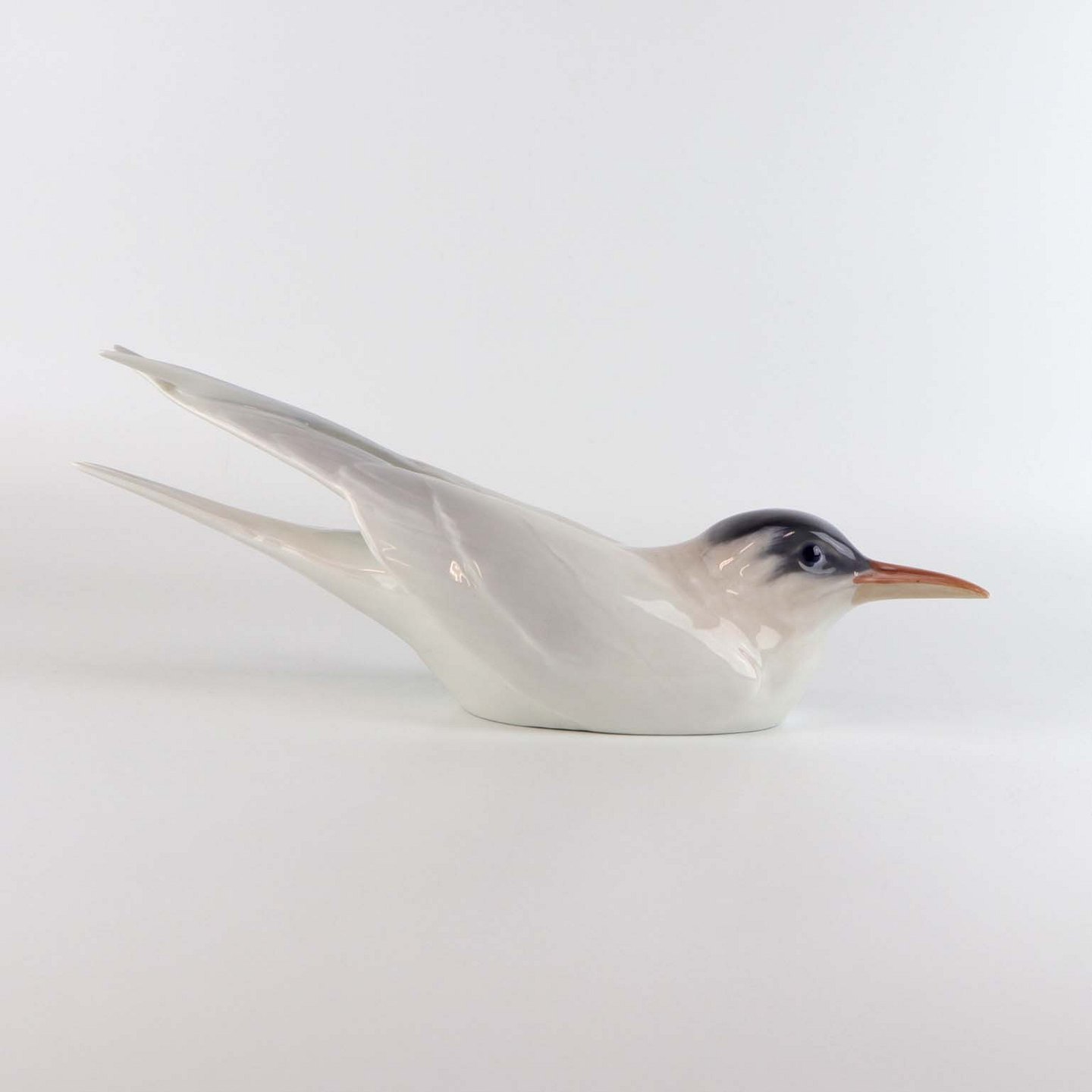 Kongelig figur i porcelæn med motiv af en liggende havterne eller en fjordterne. Nr 827