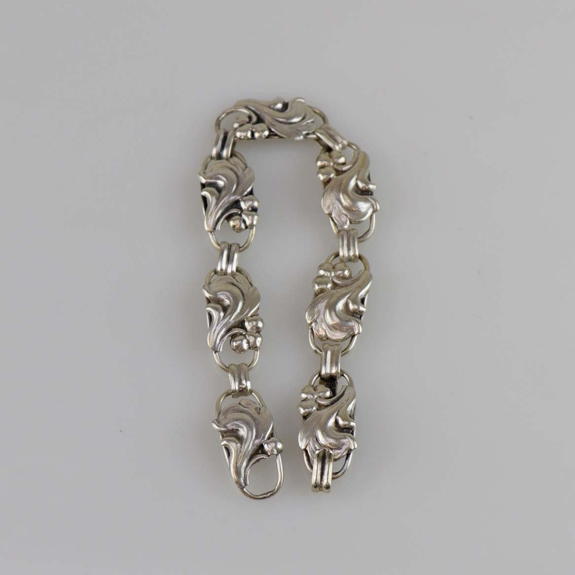 Armlænke i 830 sølv med motiv i skønvirke stilen