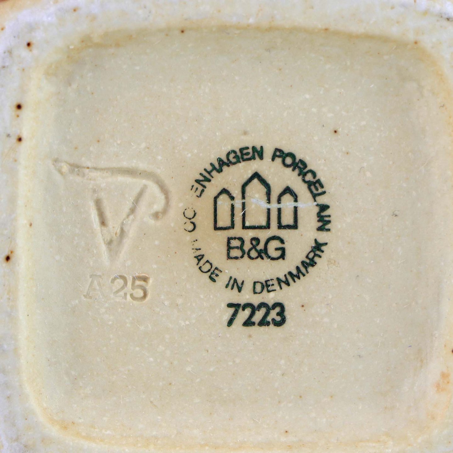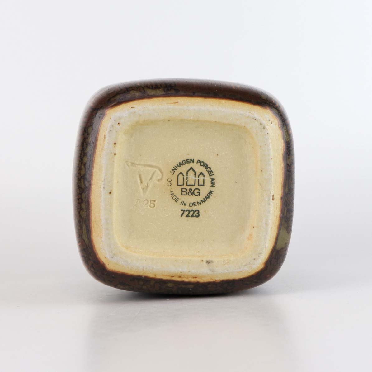 Firkantet vase i brunt stentøj med stribet mønster. Nr. 7223