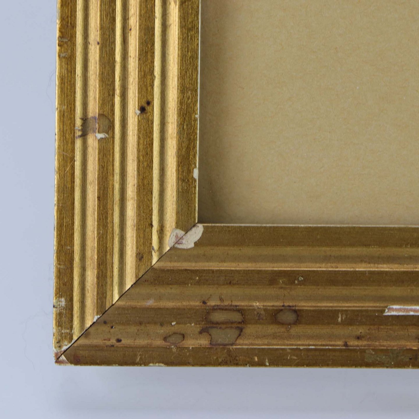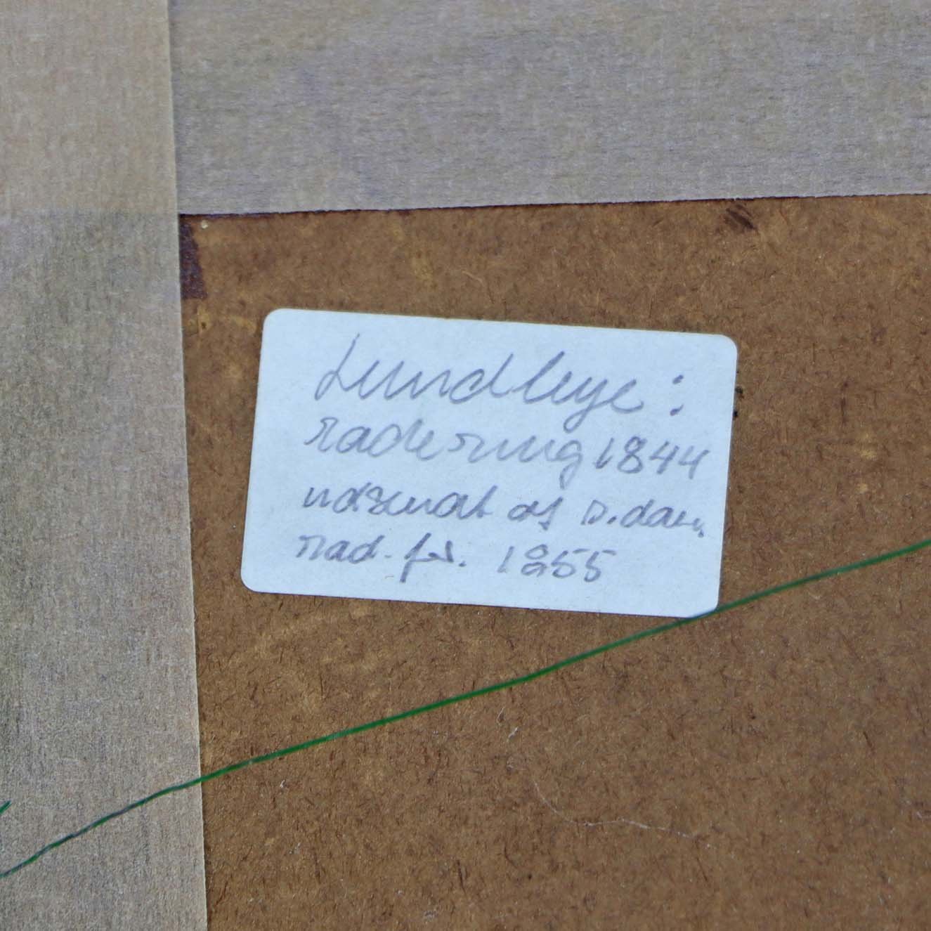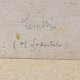Fremstår med afslag på rammens maling og tekst eller signatur med blyant nederst.