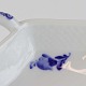 Blå blomst flettet er et hvidt stel med et flettet mønster i kanten og med motiver af blå blomster.