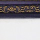 Indrammet radering med sortmalet træramme med guldmalet mønster og byskabsmotiv i silhuet.