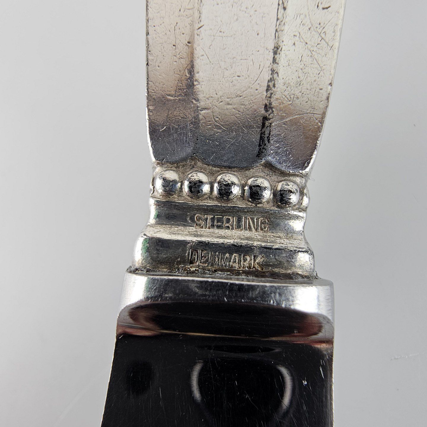 Kniv i sterlingsølv, med bestikmønsteret Konge fra Georg Jensen.
