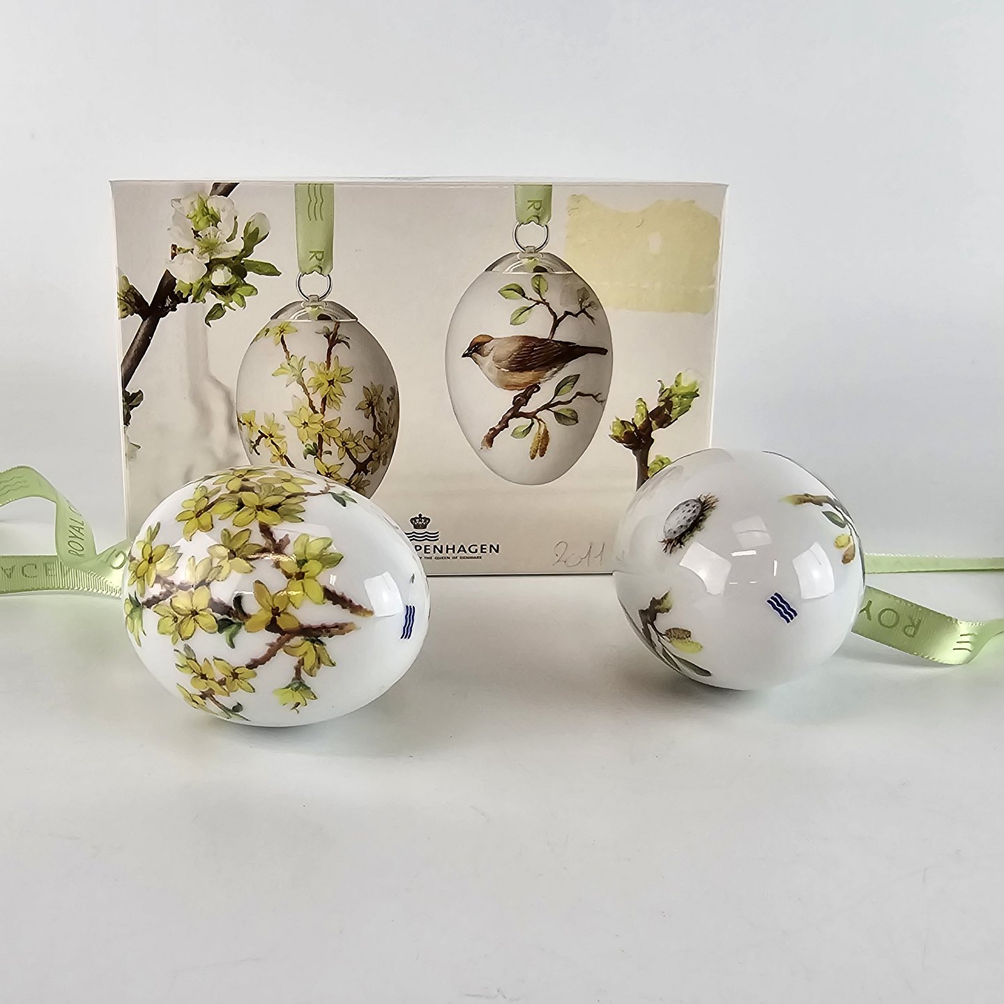 Påskeæg af kongelig porcelæn fra Forårskollektionen år 2011, med motiv af forsynthia og munk.