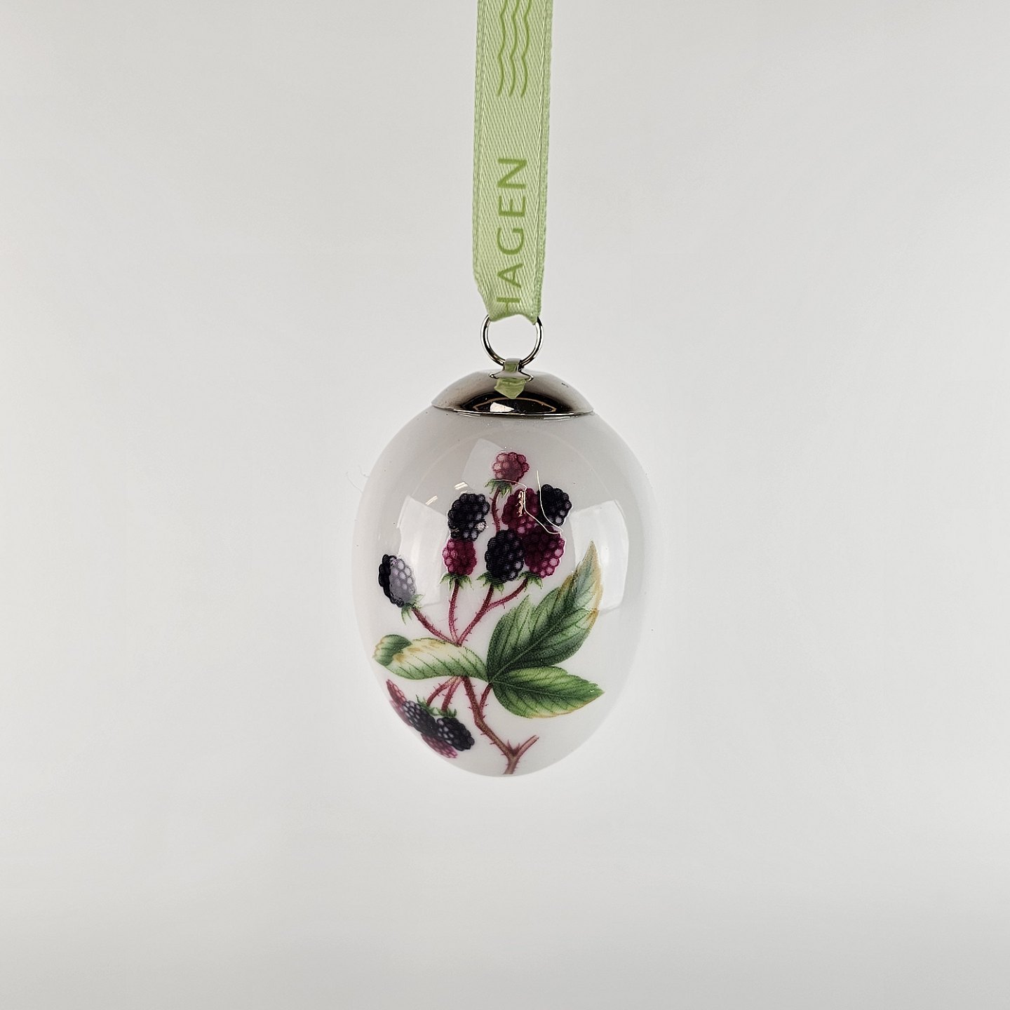 Påskeæg af kongelig porcelæn fra Forårskollektionen år 2015, med motiv af hindbær og brombær.