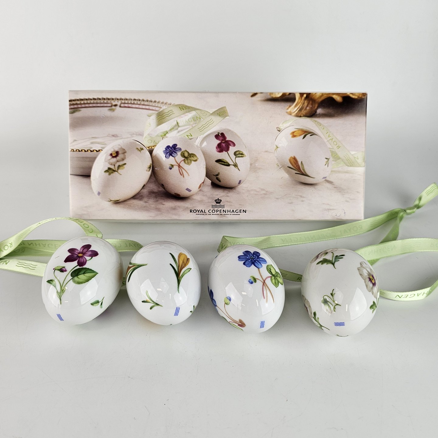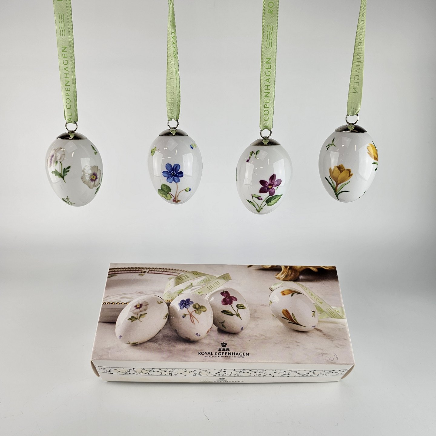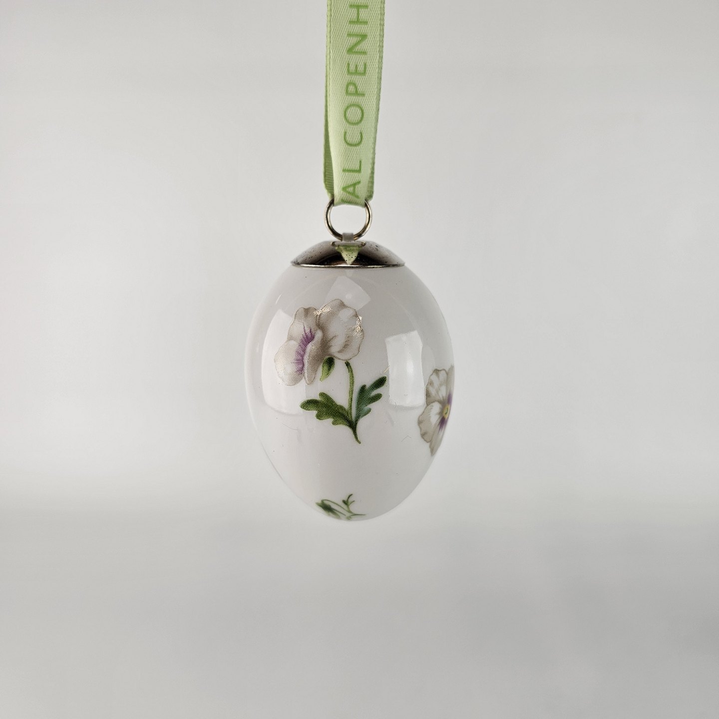 Påskeæg af kongelig porcelæn fra Forårskollektionen år 2007, med motiv af blå anemone, stedmoderblomst, viol og krokus.