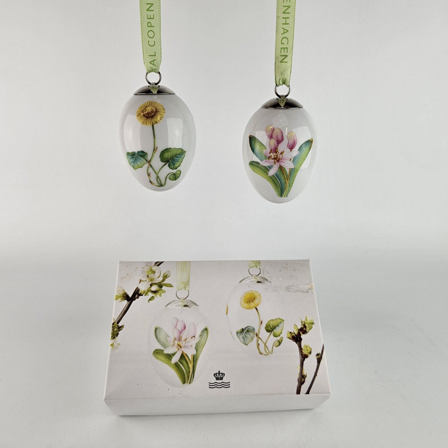 Æggene leveres med mintgrønt bånd og i original æske