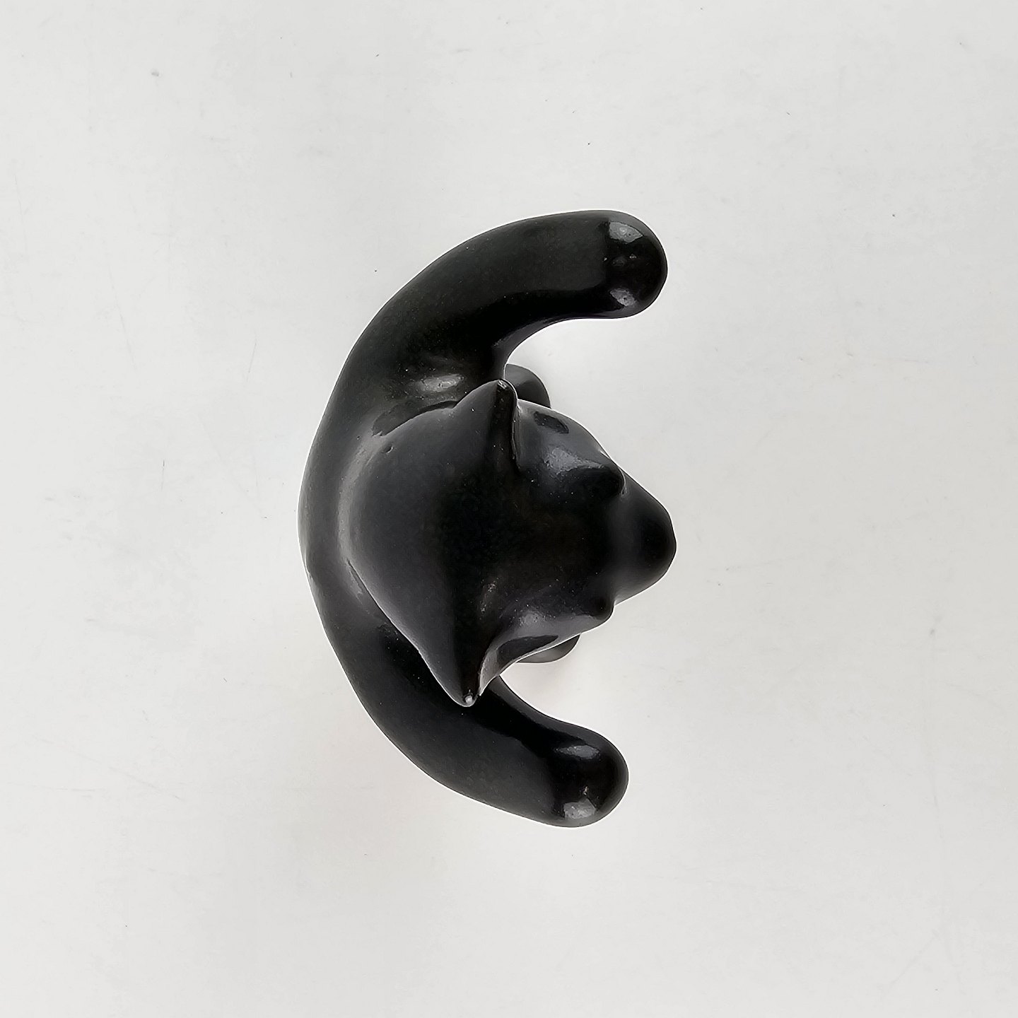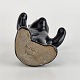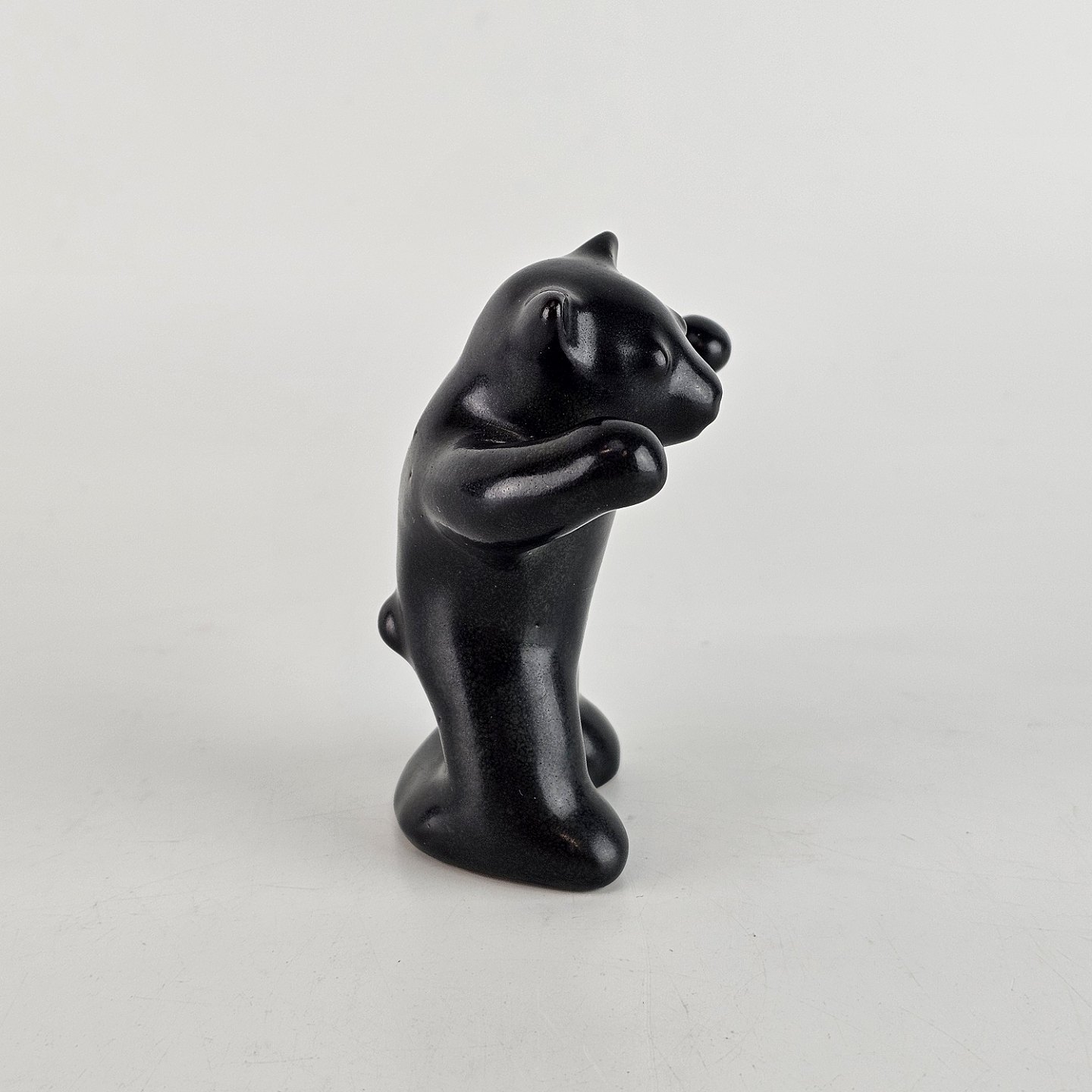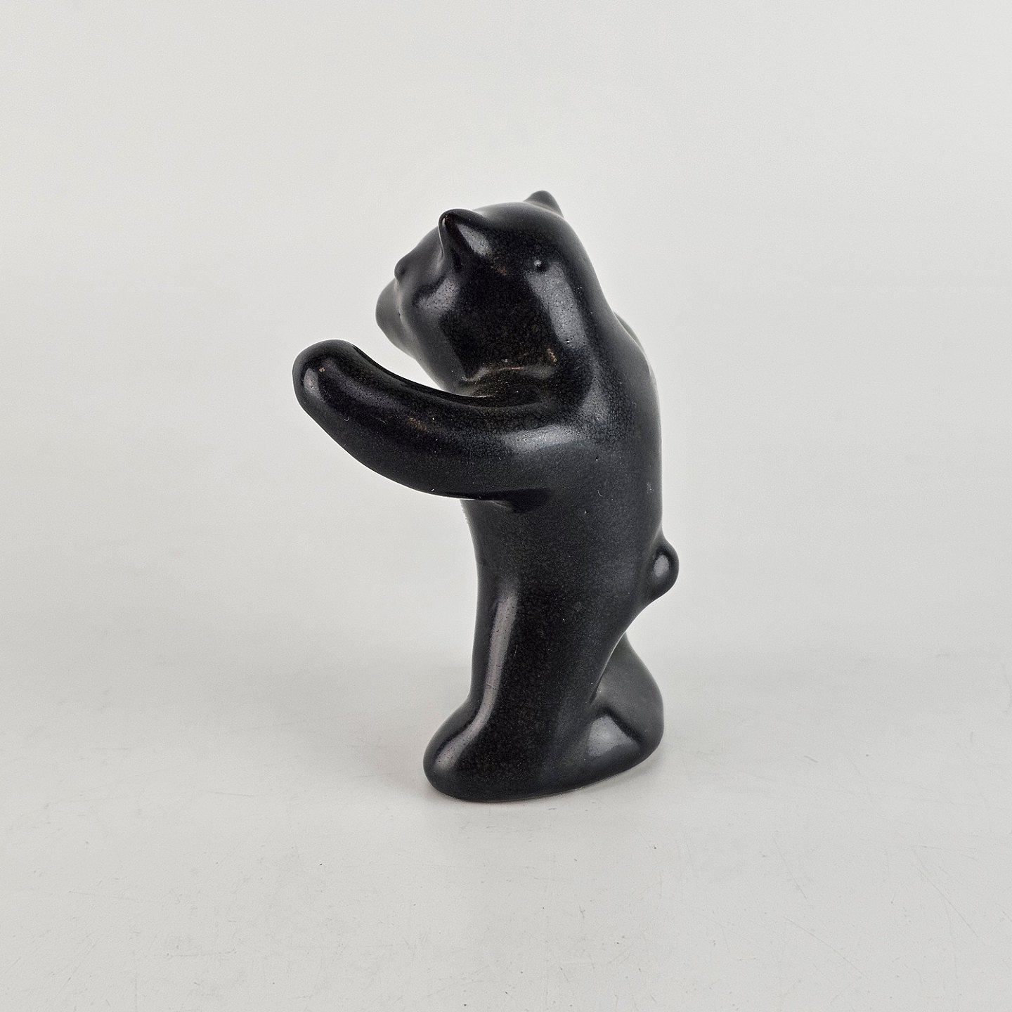 Sortglaseret keramikfigur med motiv af en bjørn som står på bagbenene med forbenene oppe.