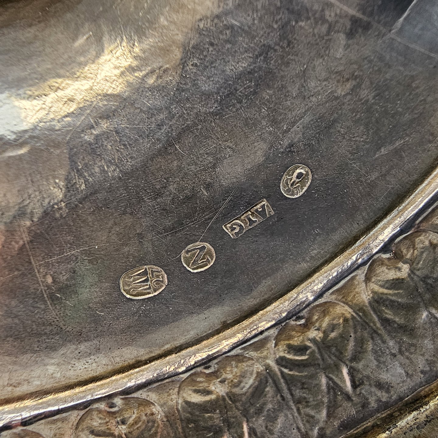 Sølvfad med teakhåndtag