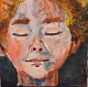 Oliemaleri på lærred, med motiv af et ansigt med lukkede øjne.