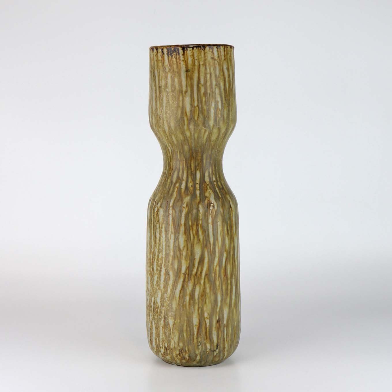Birka er fremstillet i år 1965. Vasen er med brun og beige glasur.