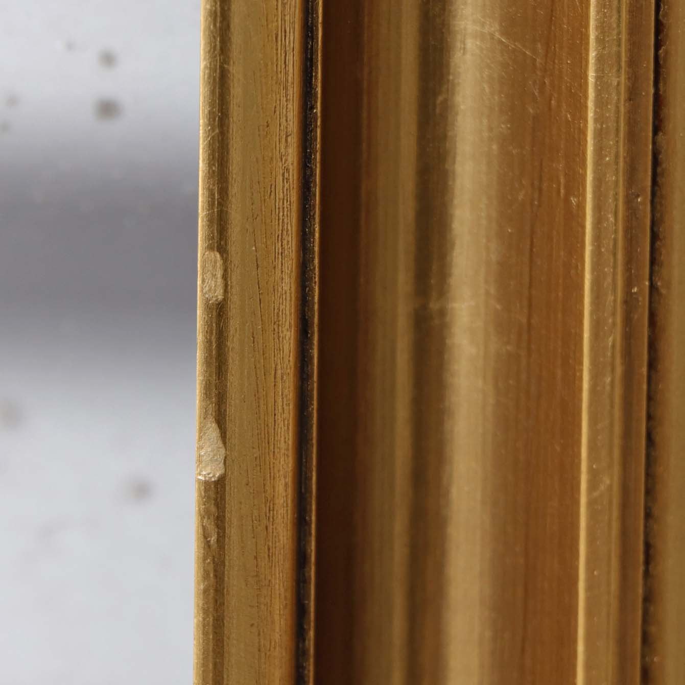 Oliemaleri på lærred i guldmalet træramme med motiv af to mennesker omgivet af ældre bygninger.